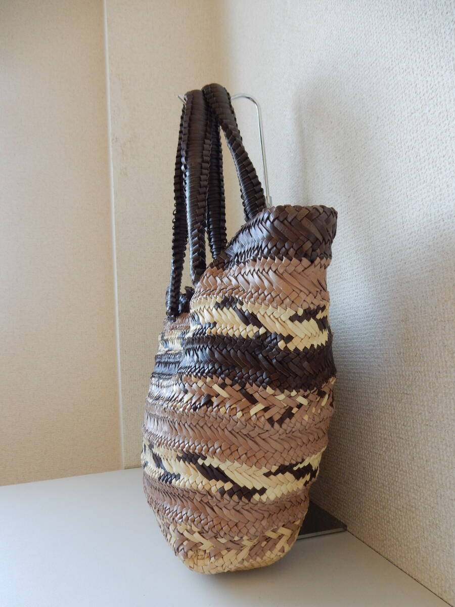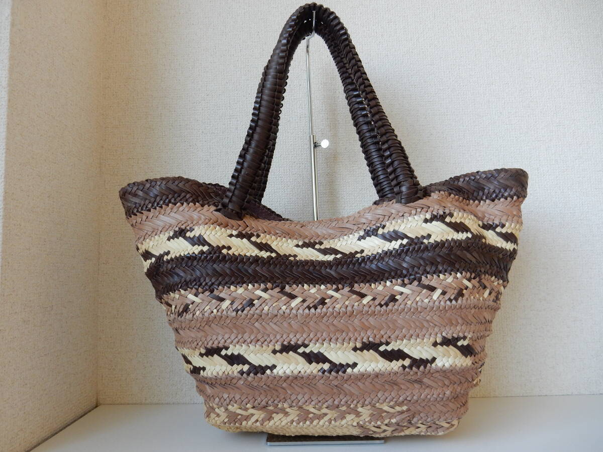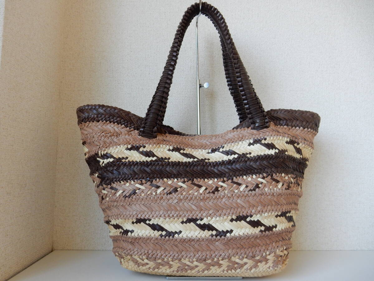 編み込みオールレザーのかごバッグ調本革トートバッグ。
