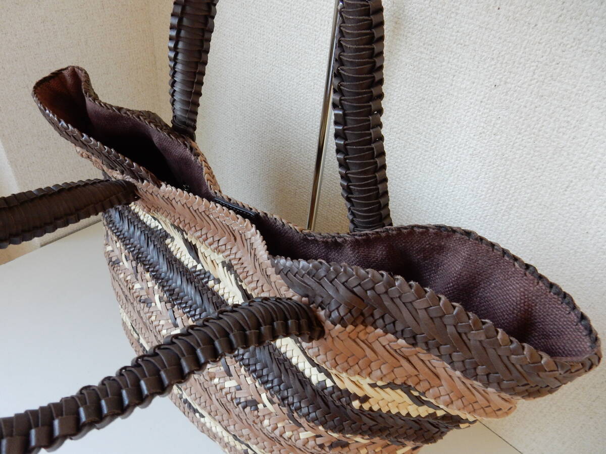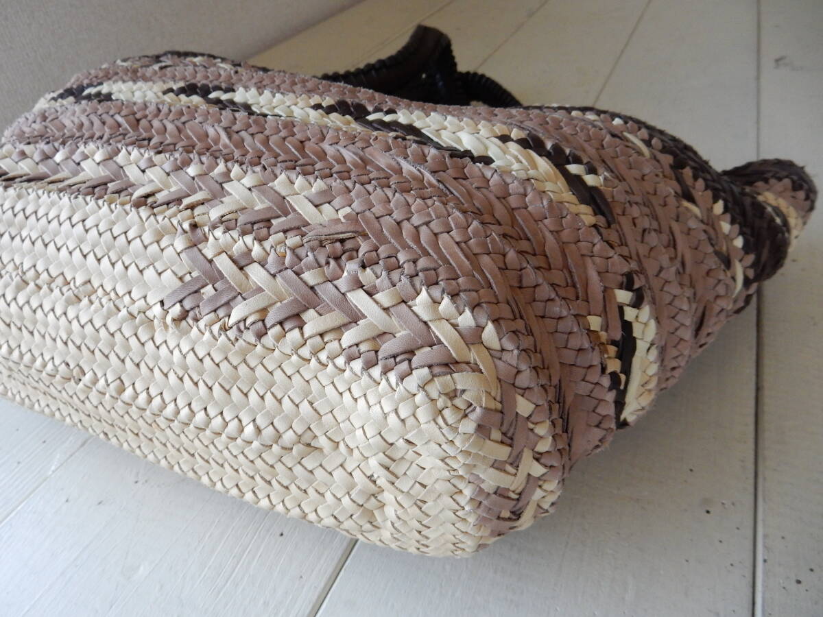 イタリア製☆本革☆PAOLO MASI(パオロマージ)☆B5対応☆肩掛けOK☆編み込みレザー☆トートバッグ ベージュミックス
