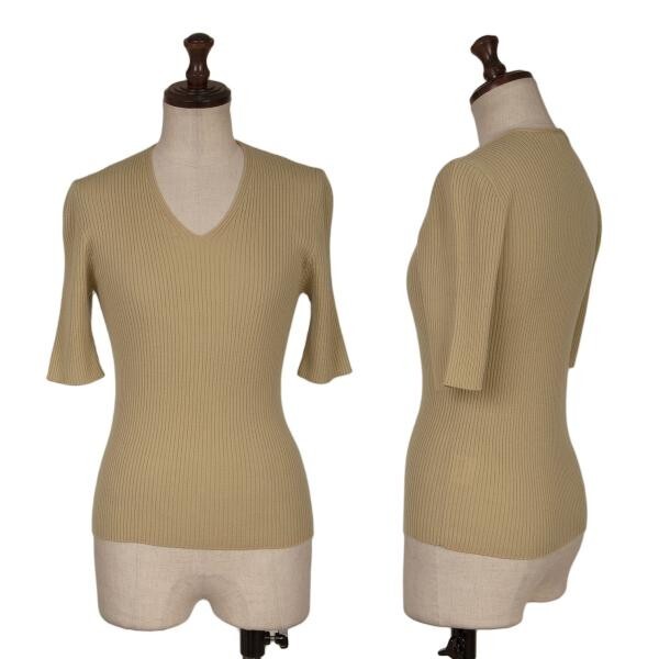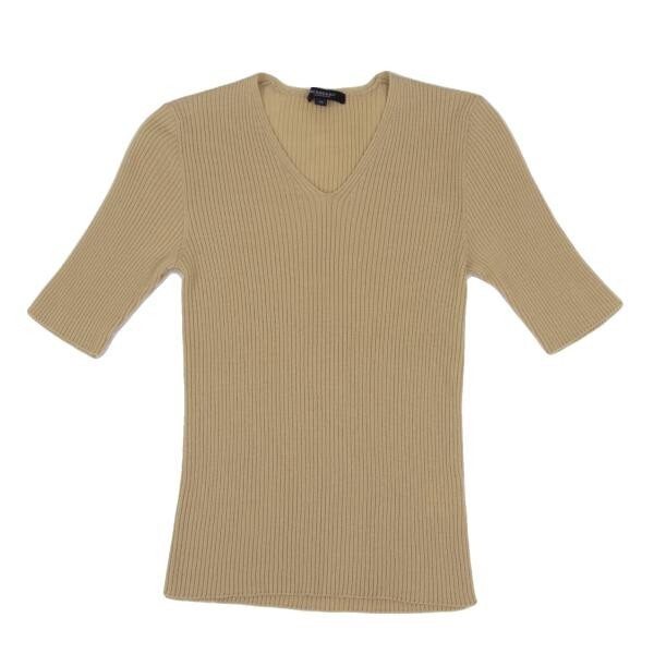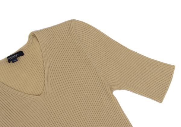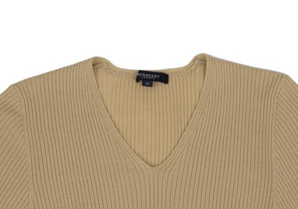 | バーバリーBURBERRY LONDON カシミヤ混ウールリブニットトップ ベージュM |