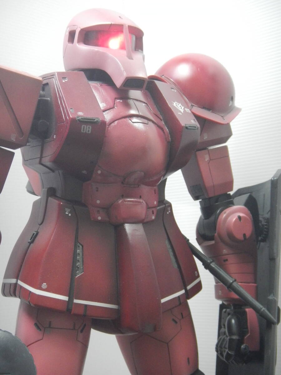 当オークションにてジャンク品のシャアザクを落札し、モールド、パネルライン、を追加 オリジン版に準ずる形で塗装しています。