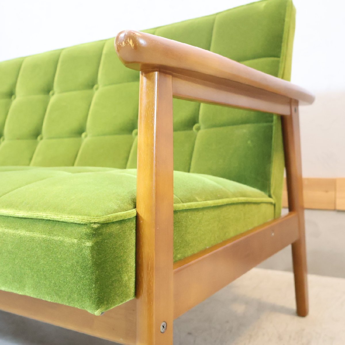 Karimoku カリモク60 モケットグリーン Kチェアー2シーター レトロ 北欧スタイル 2人掛けソファー 人気 カフェ風 ラブソファ FG404