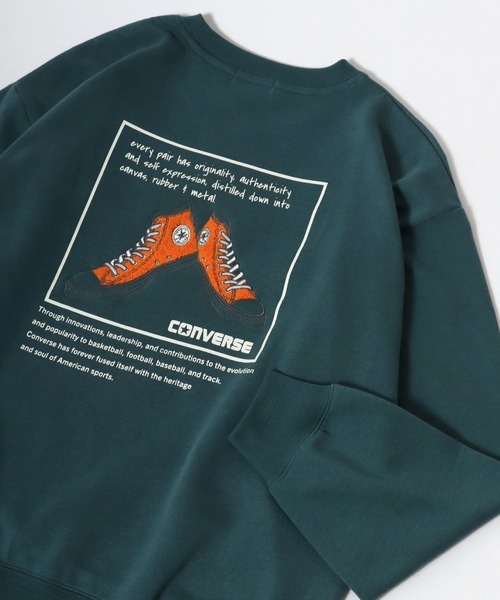 参考商品名:CONVERSE/コンバース オーバーサイズ 裏起毛 ワンポイントロゴ バックプリント サガラ刺繍 スウェット トレーナー レディース メンズ トップス