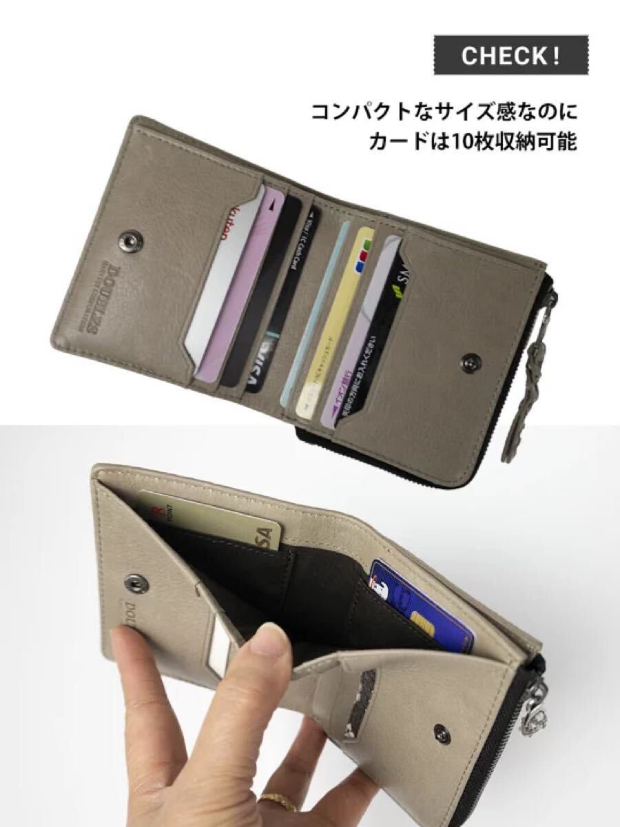 ●Lファスナー開閉の小銭入れは外側に配置されており小銭だけの取り出しがスムーズに行えます。カードは10枚収納できますが厚み・サイズは最小限で、軽量。手のひらサイズのコンパクトな折り財布です。内装は馴染みのいいイタリアン牛革を使用しており機能性に優れています。