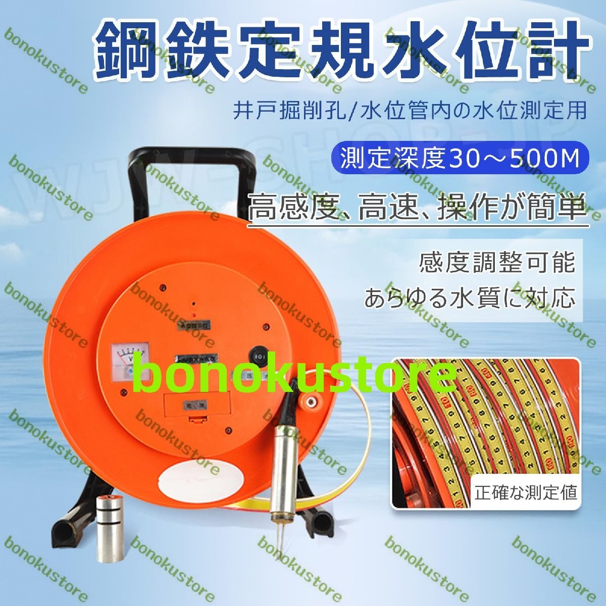 水位計 10~500M ステンレスプローブ 水位測定 電子井戸水位計 高精度 水位深度計 スチール定規水位計 井戸の掘削孔と水位管内の水位の測定 長い耐用年数 30M