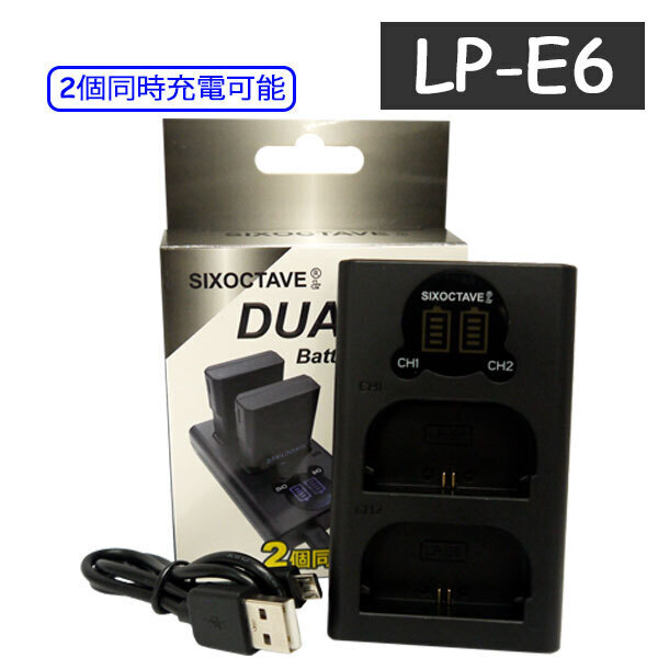 LP-E6 Canon キャノン 互換デュアルUSB充電器 LC-E6 純正バッテリーも充電可能 EOS R EOS Ra EOS 5D Mark II EOS 7D EOS R5 EOS R6 EOS R7