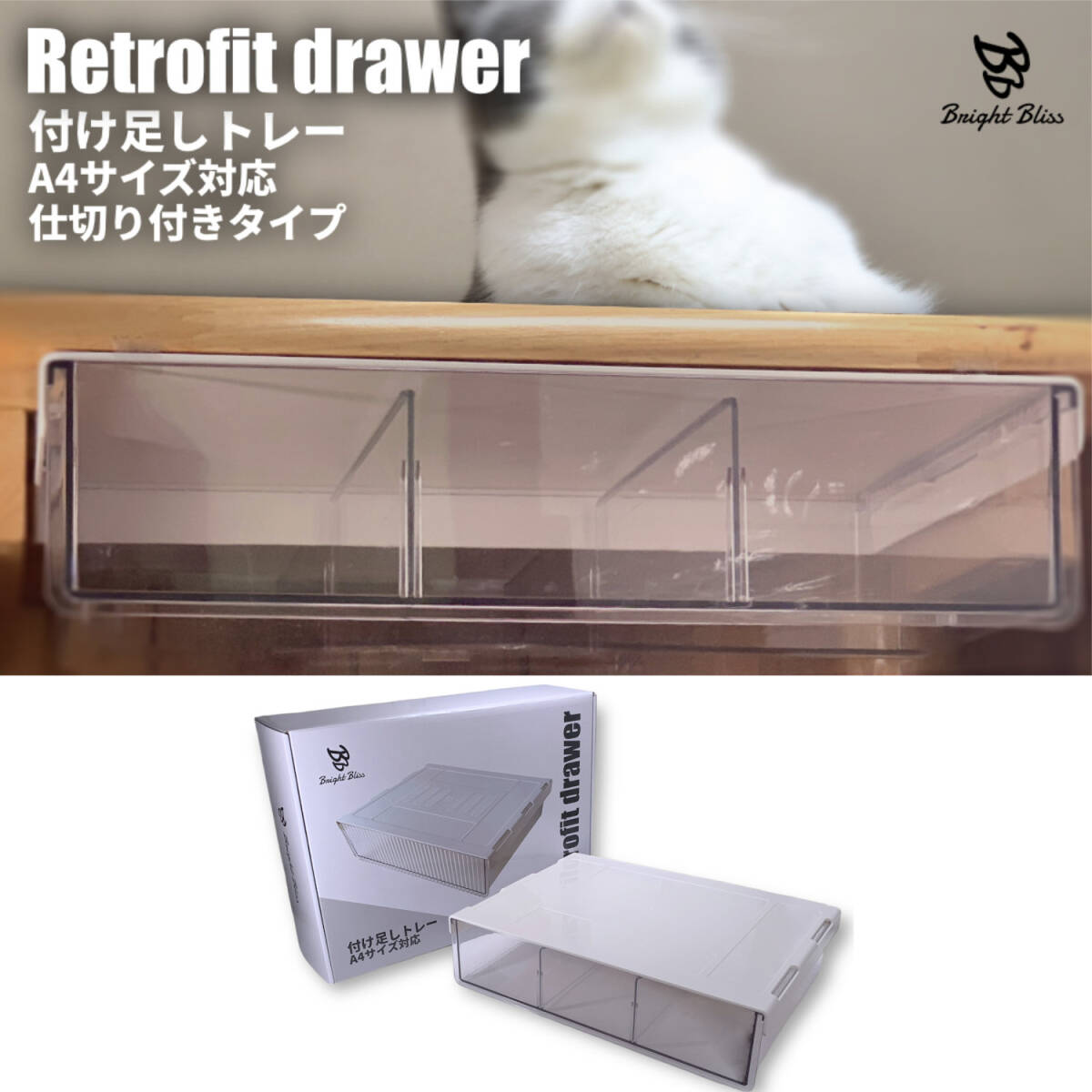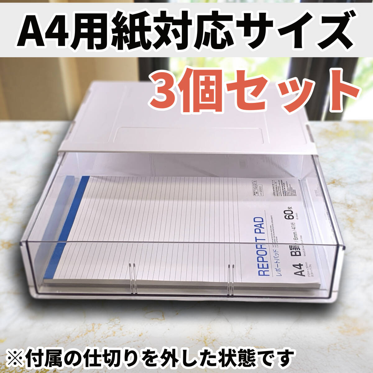 後付け引き出し 3個セット A4サイズ対応 仕切り付きタイプ 透明 デスク下収納