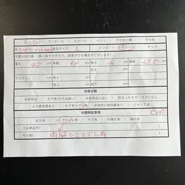 ・シミやヨゴレ有(両脇シミヨゴレ有)