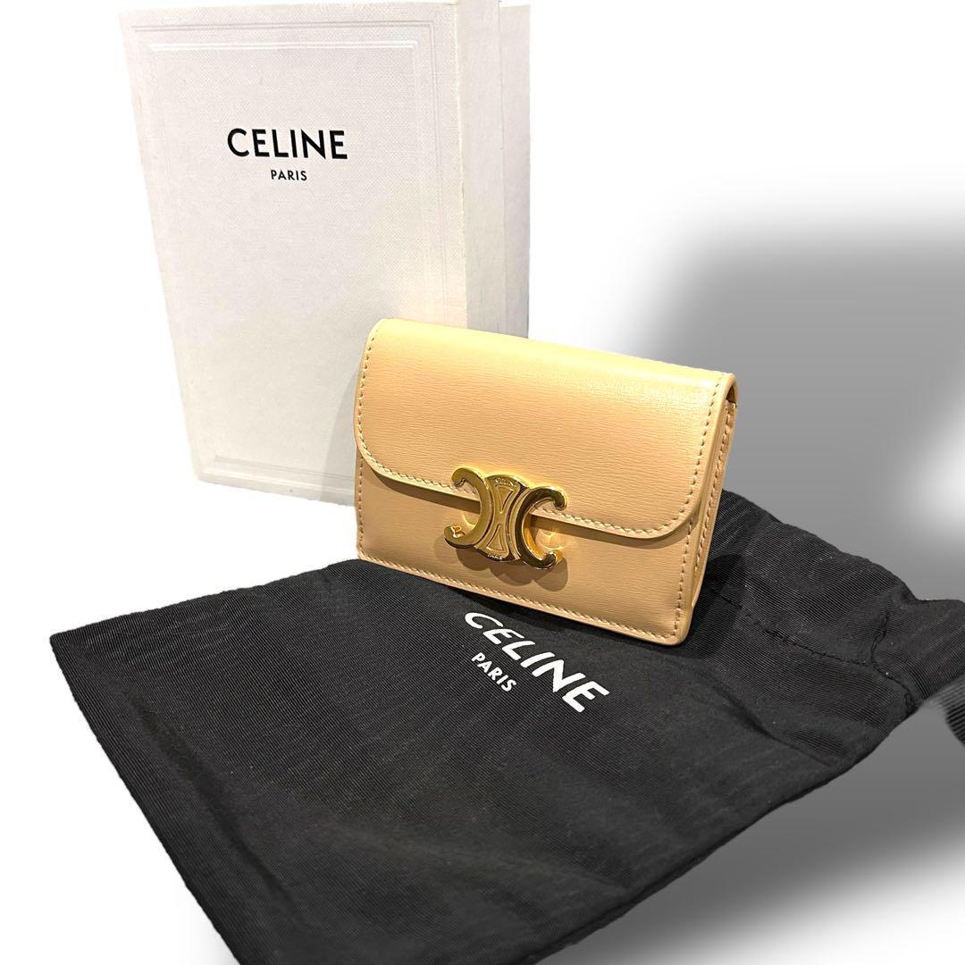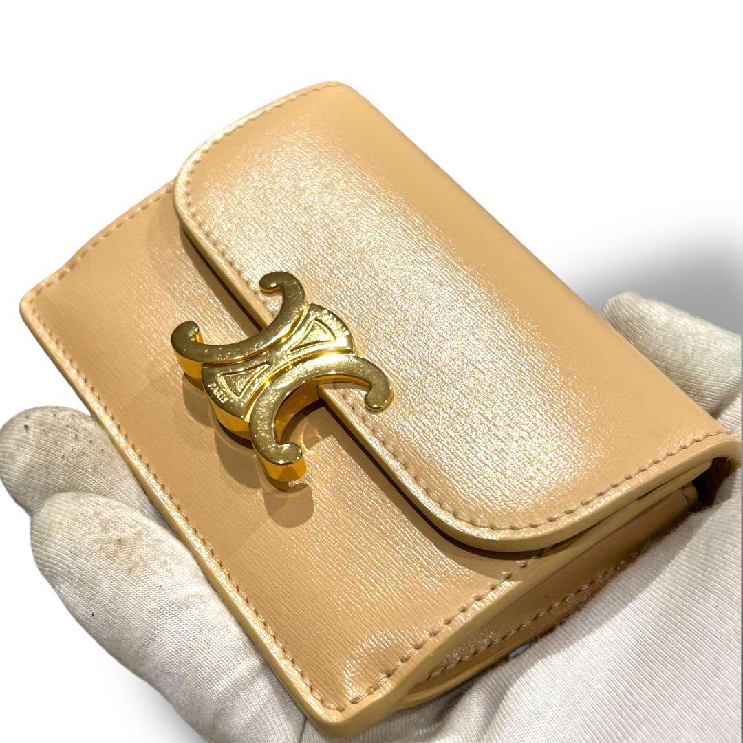CELINE セリーヌ コインケース 小銭入れ ジッピー カードケース パスケース トリオンフ ゴールド金具 お洒落 オシャレ 普段使い ベージュ レディース メンズ