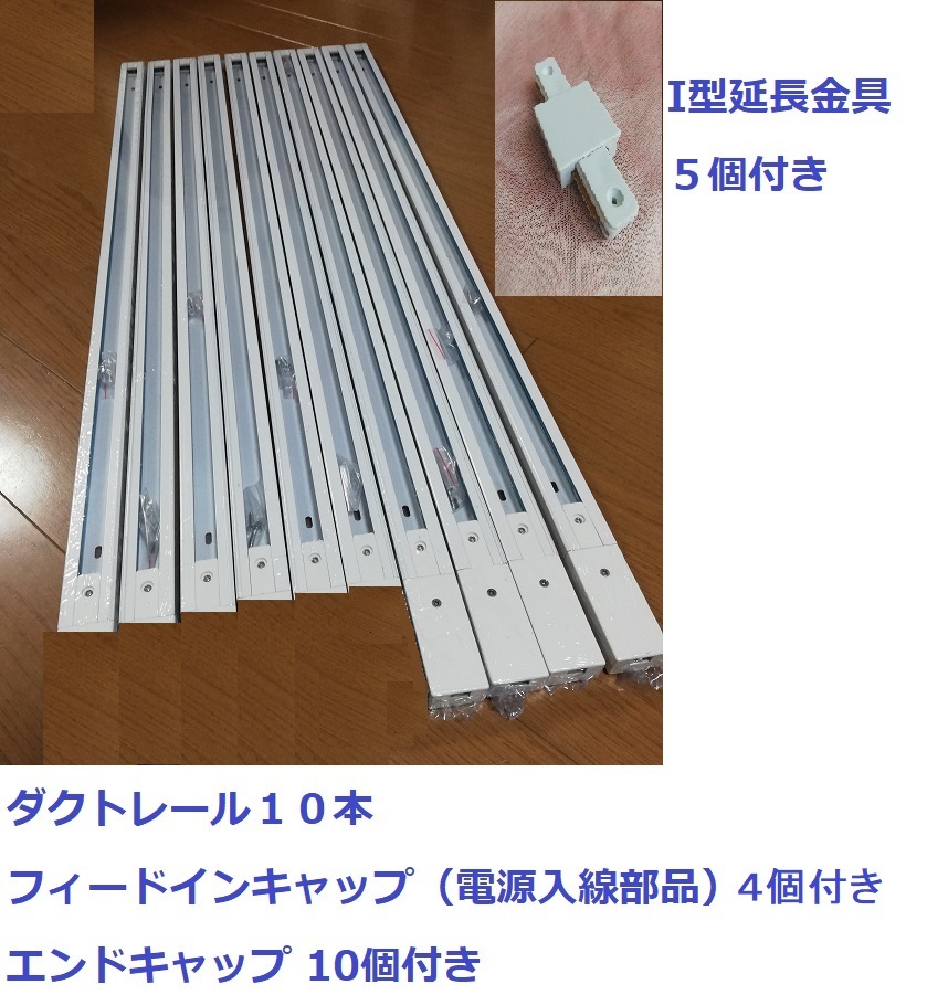 ☆コスパ最高 配線ダクトレール スポットライト用 10本W フィードインキャップ4個付き I型延長金具5個付 ライティングレール 照明器具 90W