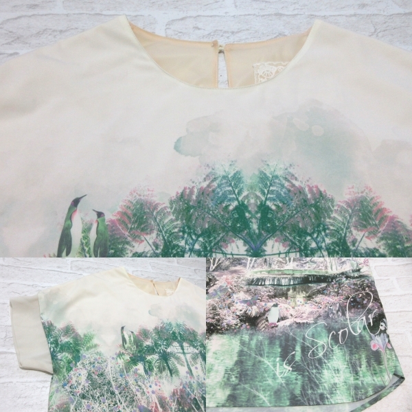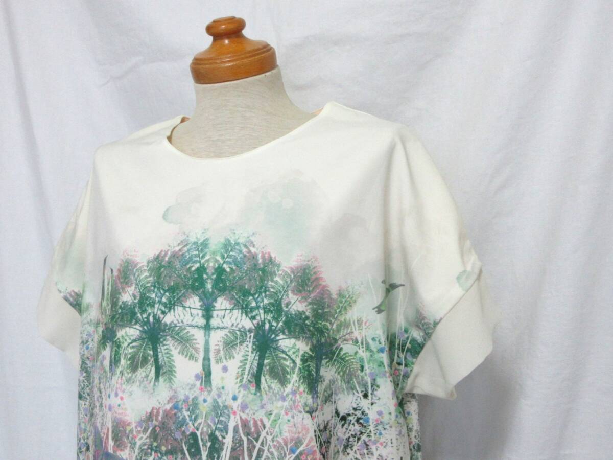 | アイボリーカラーに幻想的なプリントが目を惹く素敵な1枚です。 | ||