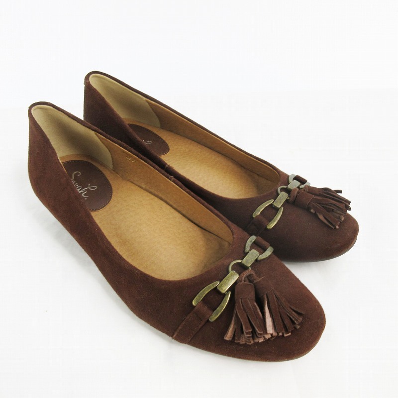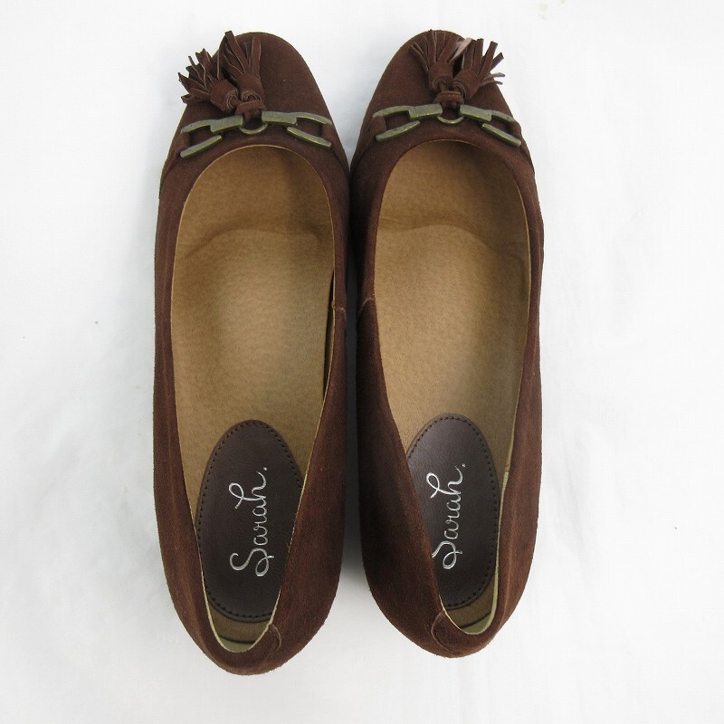 Sarah サラ パンプス ラウンドトゥ フリンジ スウェード レザー 茶 ブラウン 24EE 靴 レディース