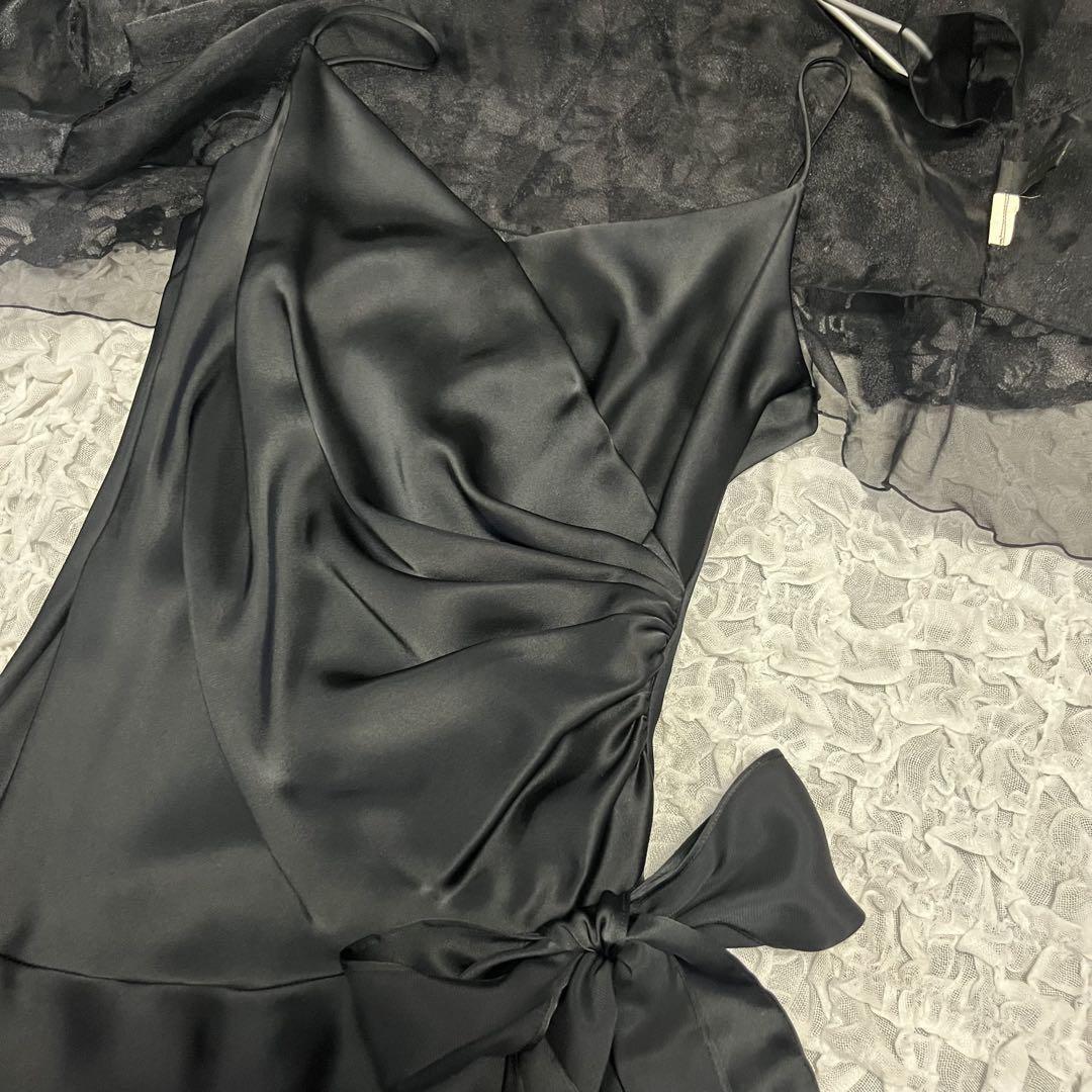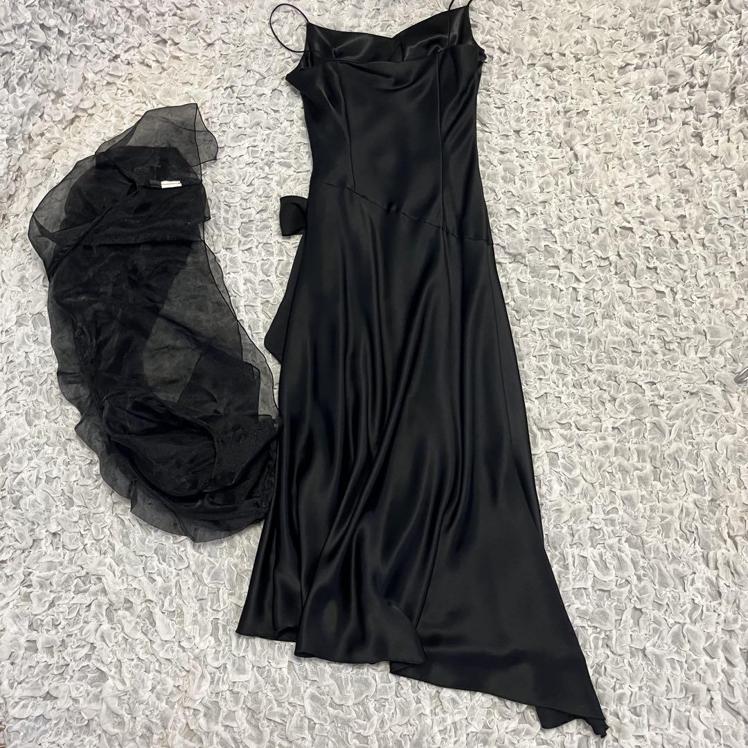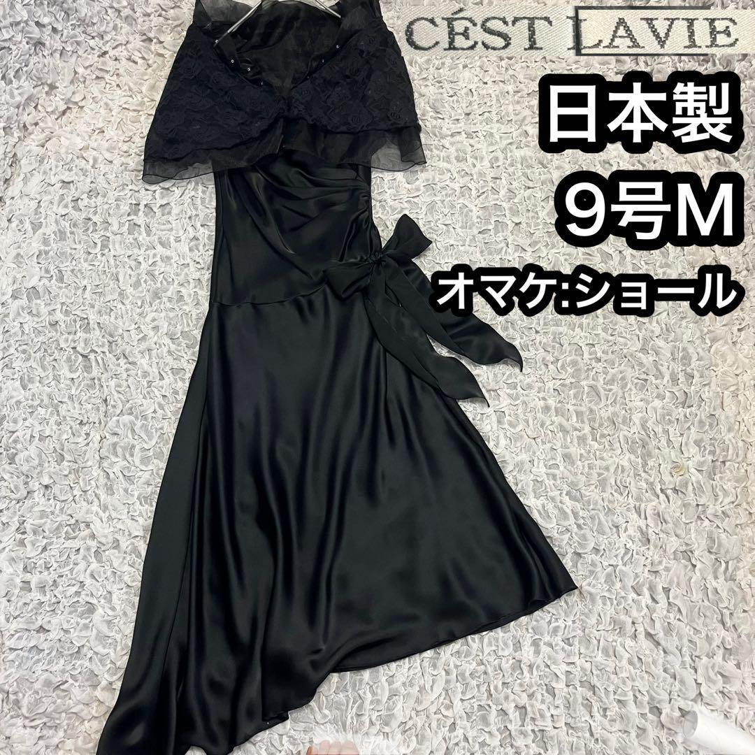 ■アイテム: 日本製【C'est Lavie】黒 光沢 パーティードレス 9号M ワンピース