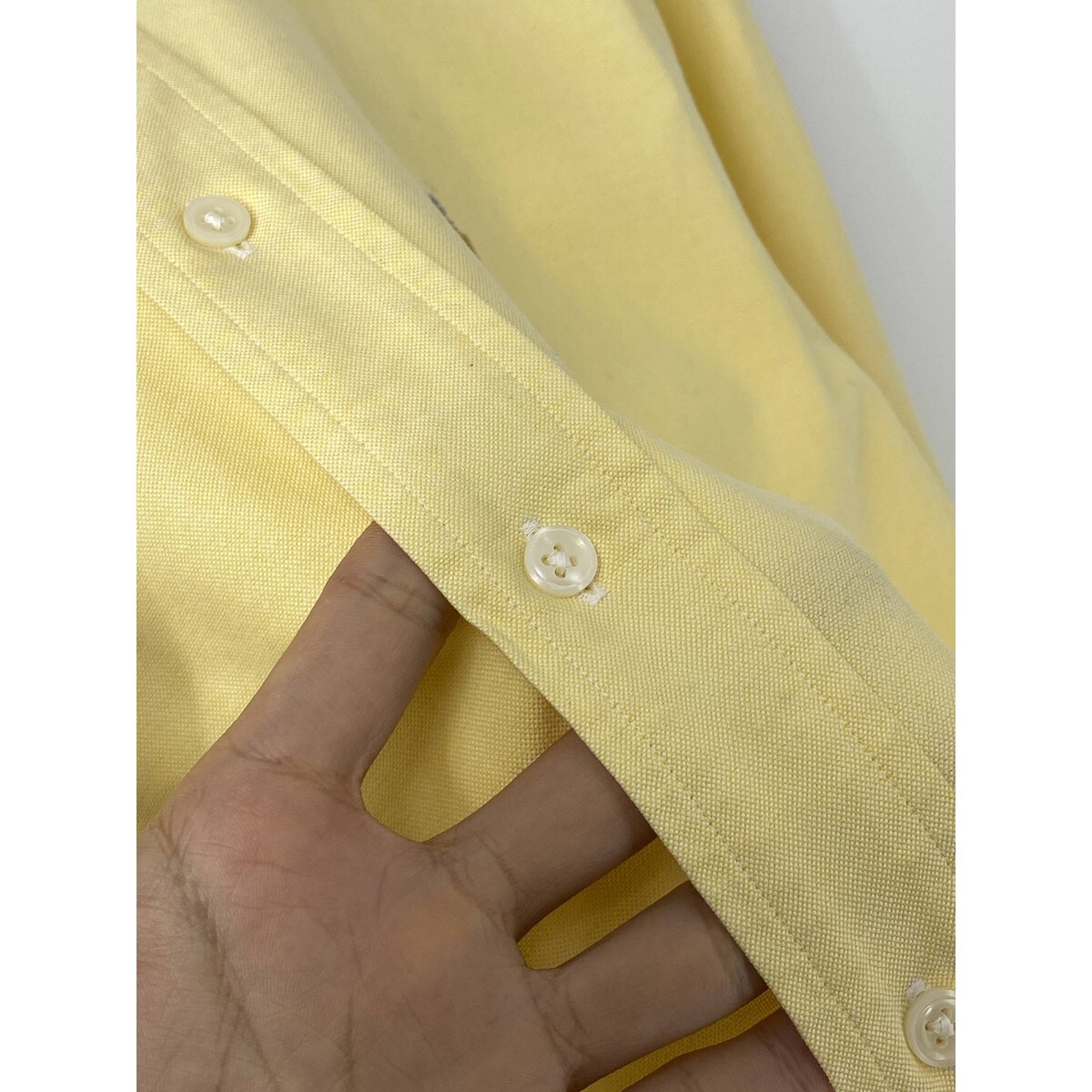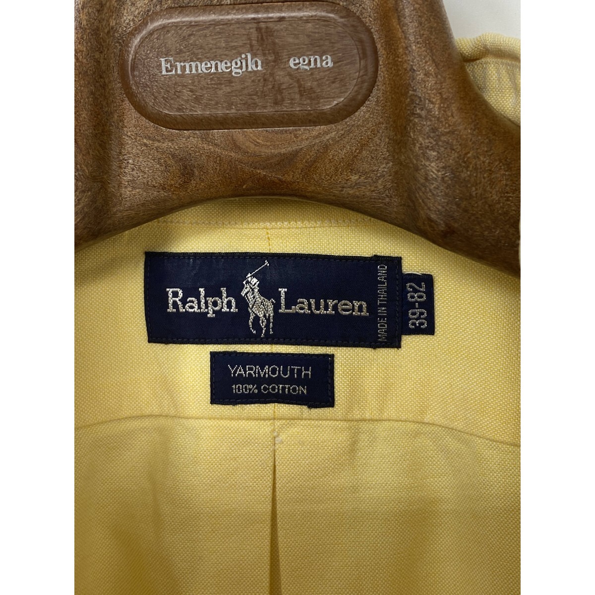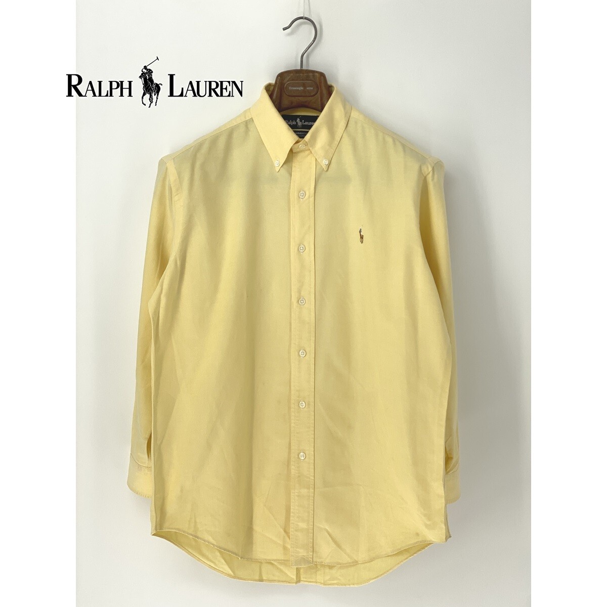 A8752/90s 美品 春夏 POLO RALPH LAUREN ラルフローレン YARMOUTH コットン 長袖 胸ポニー刺繍 ボタンダウン シャツ 39-82 M程 黄色 メンズ