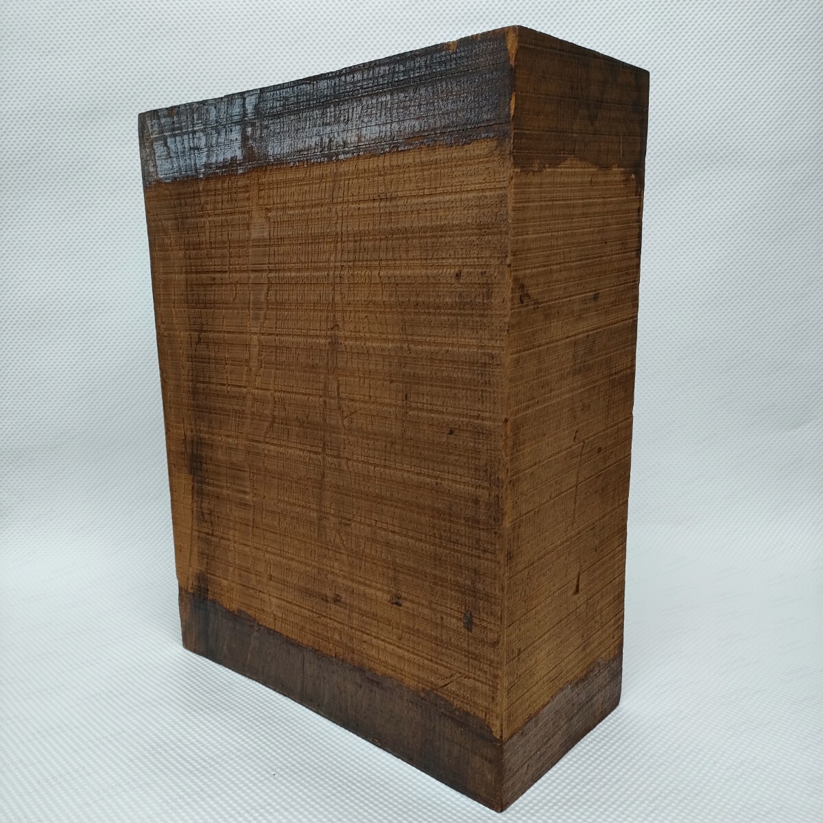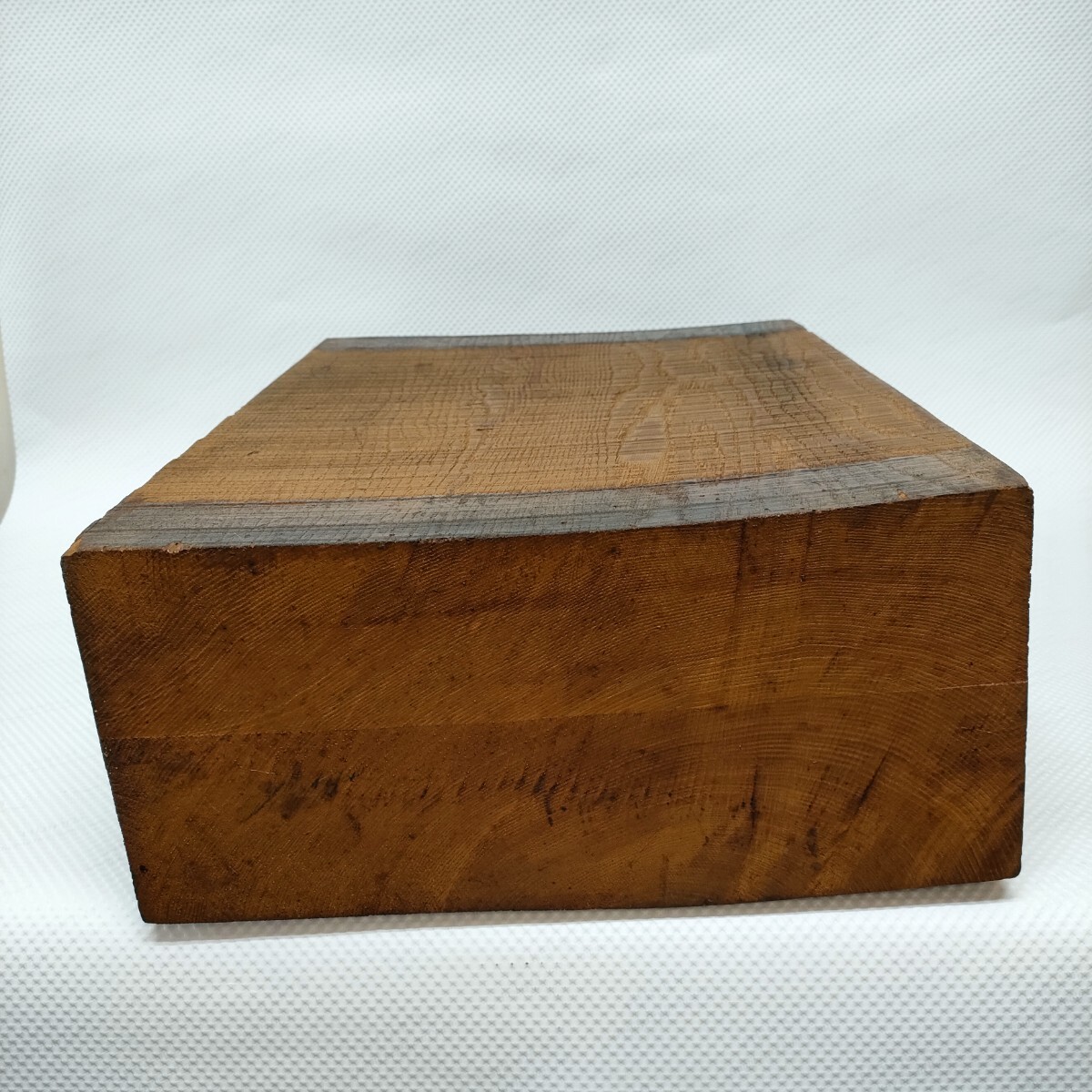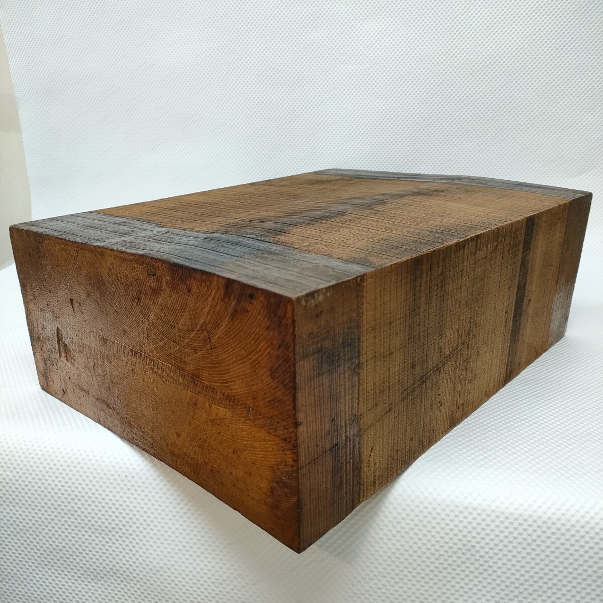 この栗材のブロックは35年前に石川県金沢市の木工家の方から譲り受けました。その職人さんはこの材を25年あまりねかしていたそうです。60年ほど室内で保管している栗材です。材の形状は35年間変化はありません。よく乾いています。