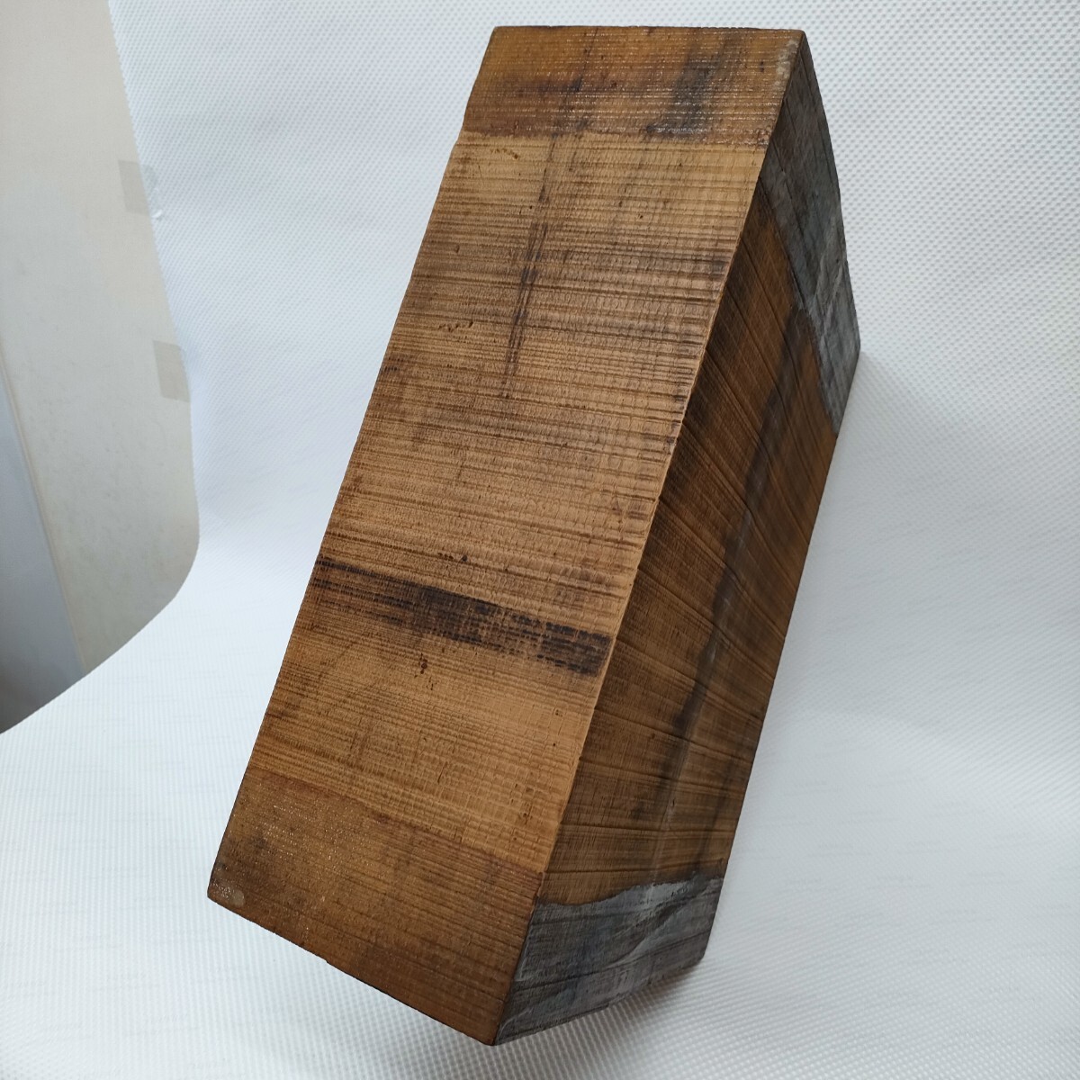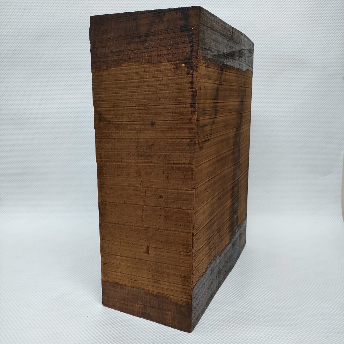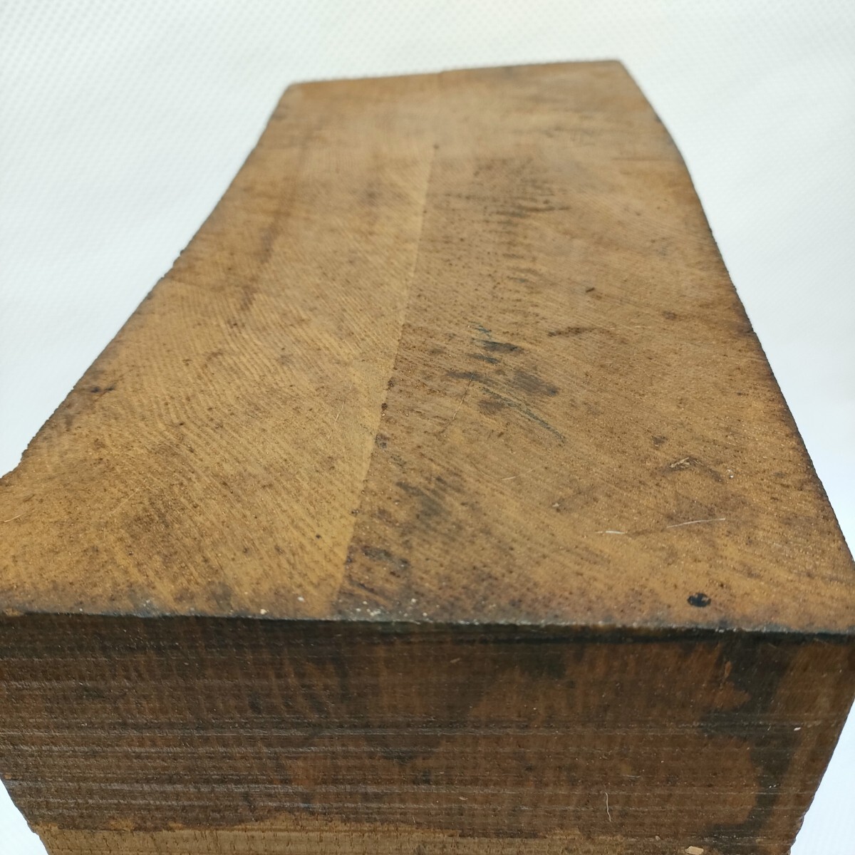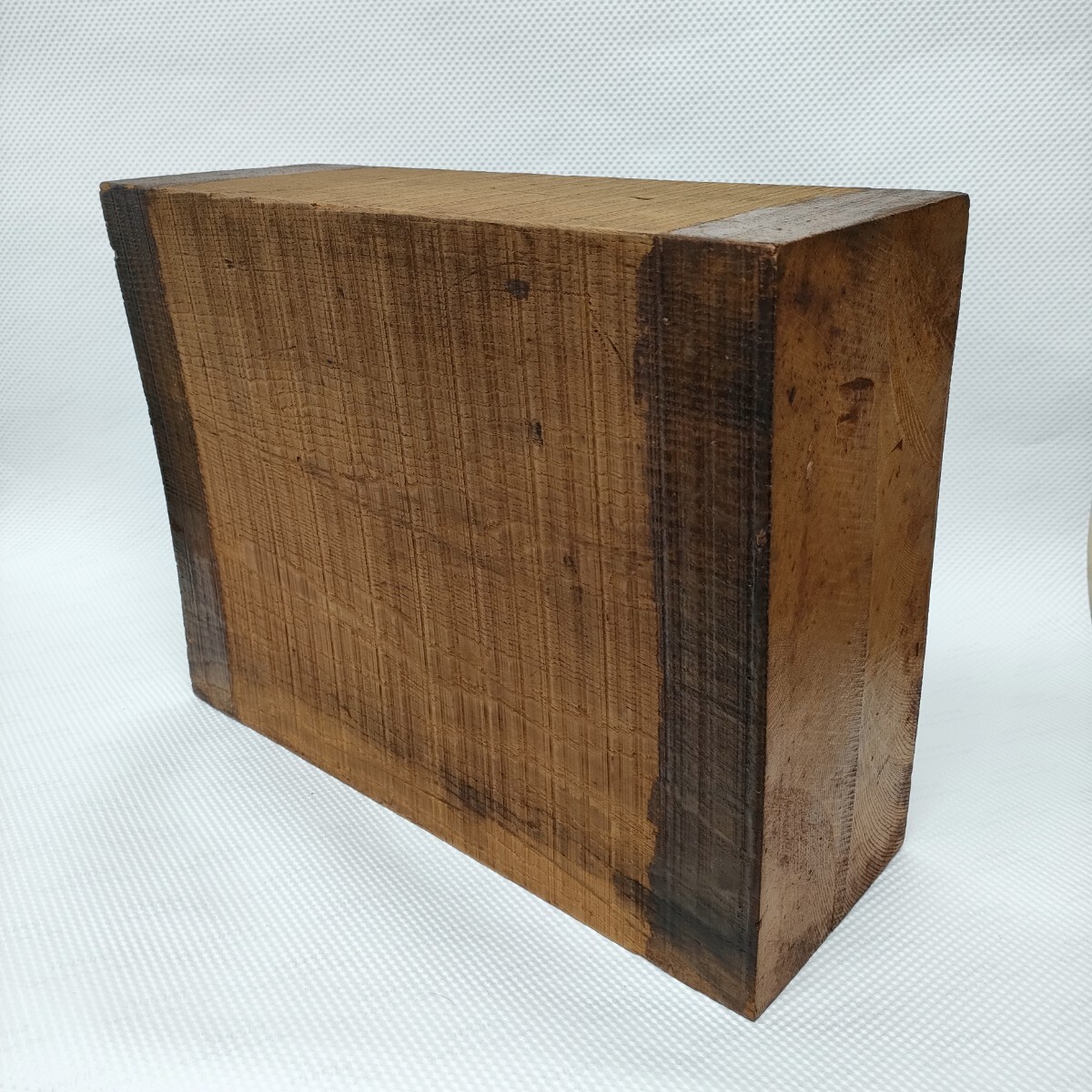 この栗材のブロックは35年前に石川県金沢市の木工家の方から譲り受けました。その職人さんはこの材を25年あまりねかしていたそうです。60年ほど室内で保管している栗材です。材の形状は35年間変化はありません。よく乾いています。