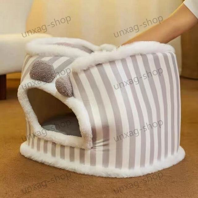 サイズ: S:40*30*32CM (体重約3.5kg以内のペット対応) M:45*35*37CM (体重約7kg以内のペット対応) L:50*45*44CM (体重約12kg以内のペット対応) 猫や小型犬に適した居心地のペットベッドです。ペットが楽に出入りできるようにデザインしております。 安心な素材を使用しております。柔らかい生地のフチは空間を暖かくし、ペットが頭を乗せられる快適なヘッドレストとしても機能します。柔らかい生地で空間を暖かくし、手足が伸ばしやすく,もっちりとした感触の柔らかベッドがネコと犬の体をやさしく包まれ、ふんわり支えます。 底面には滑り止めのドリップモールドを施し、湿気を防げ、摩擦抵抗を増加させ、ベッドが滑りにくくなっています。
