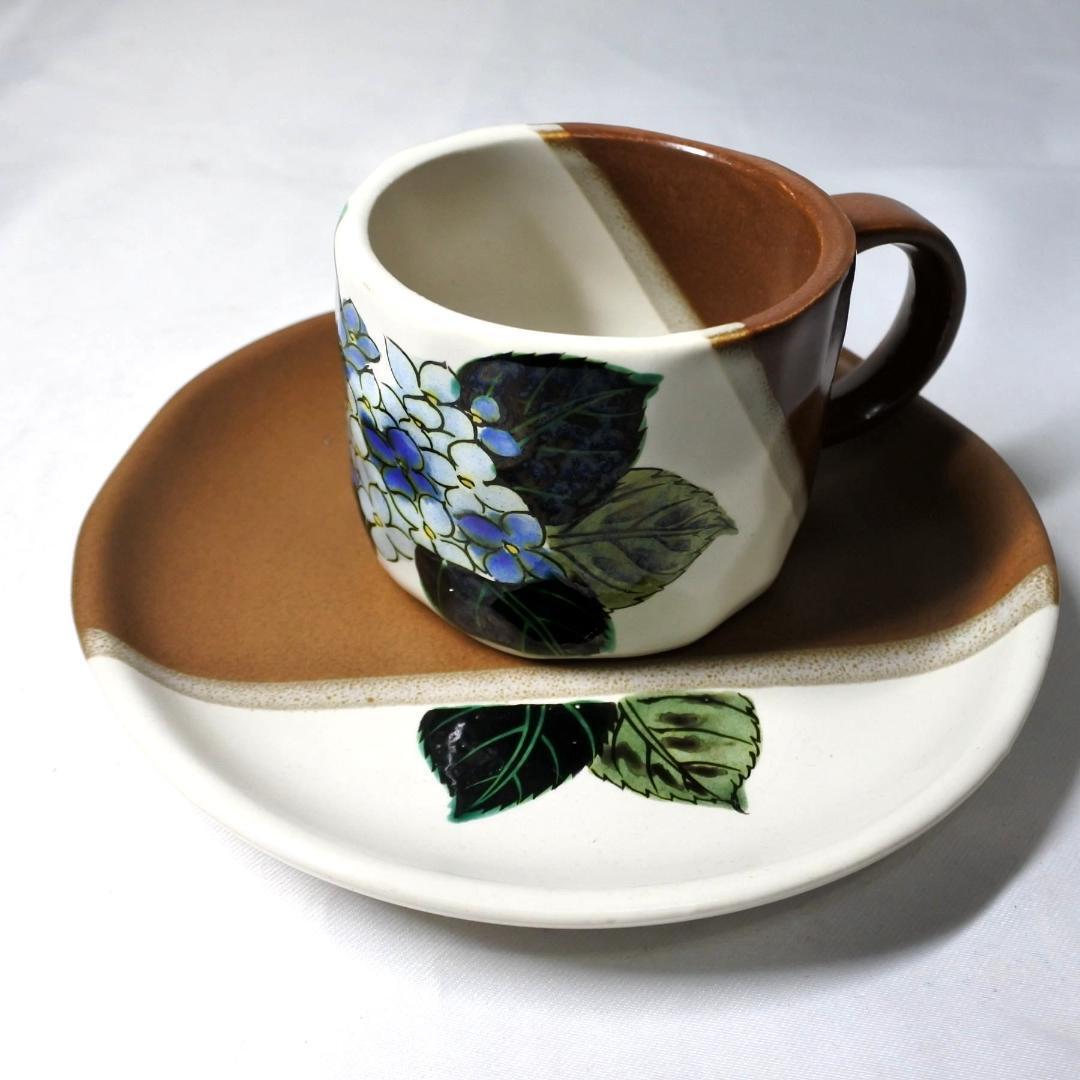 未使用 九谷焼 コーヒーカップ&ソーサー 紫陽花文様