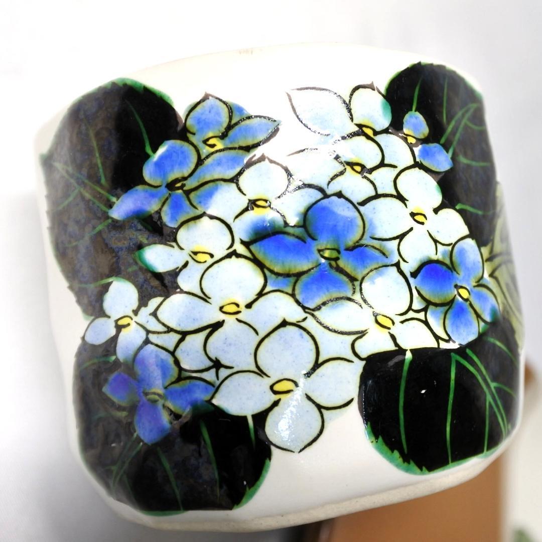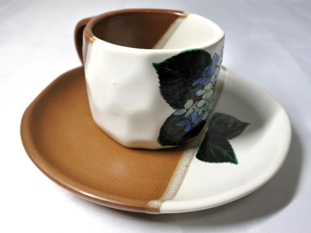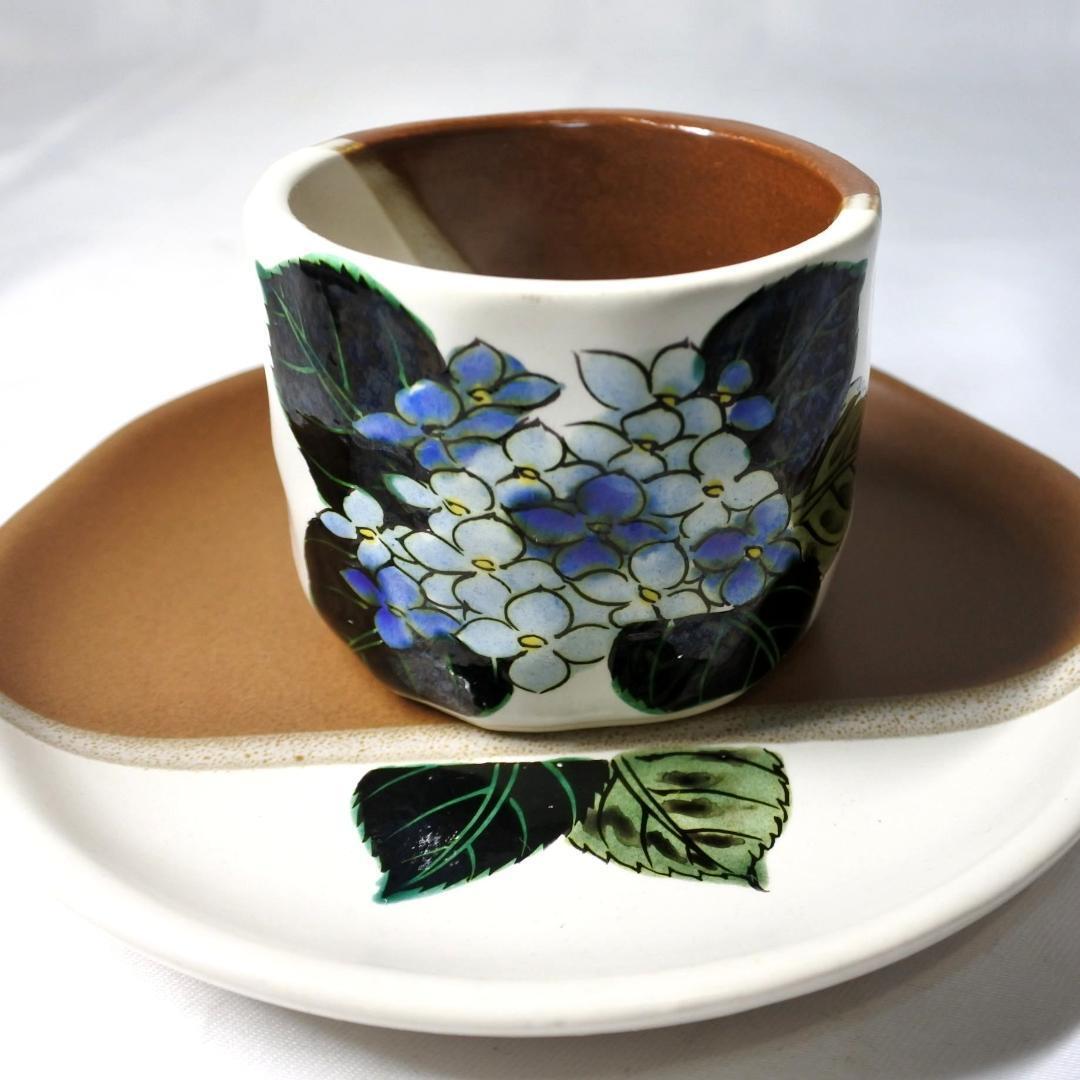 未使用 九谷焼 コーヒーカップ&ソーサー 紫陽花文様 02