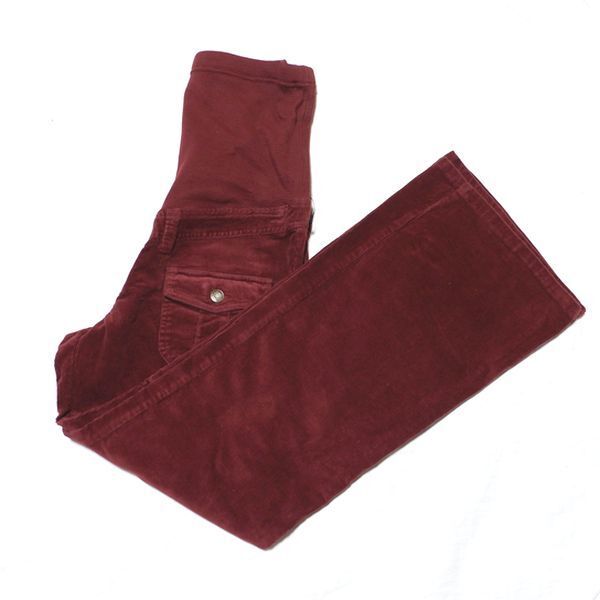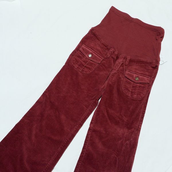 Last 未使用 L 股下75 綿ストレッチ 総リブ コーデュロイ マタニティパンツ ワイン