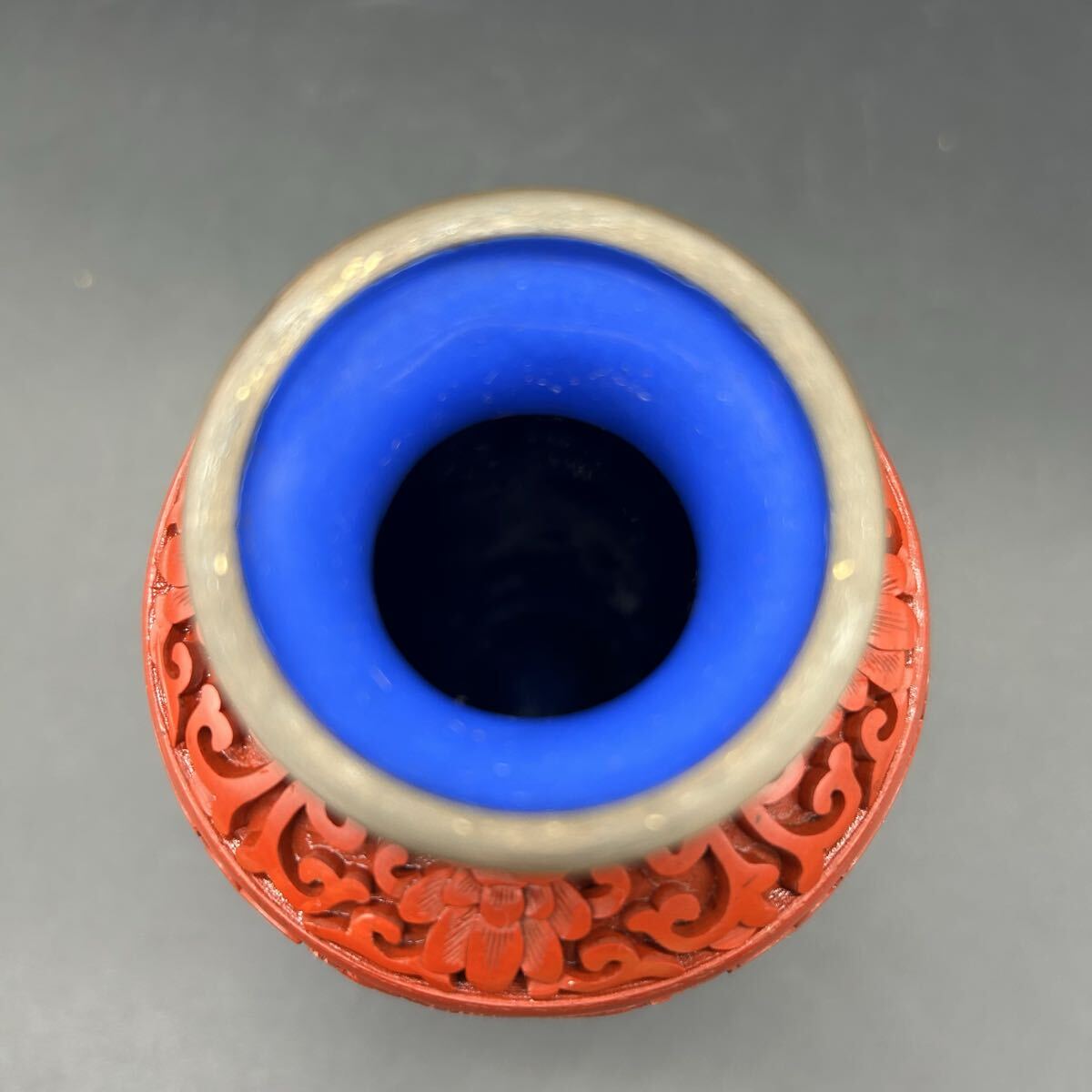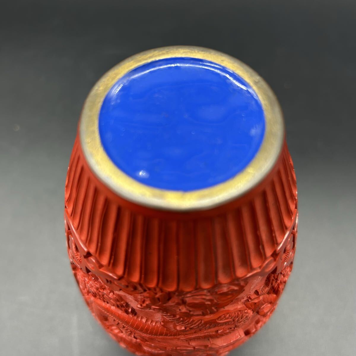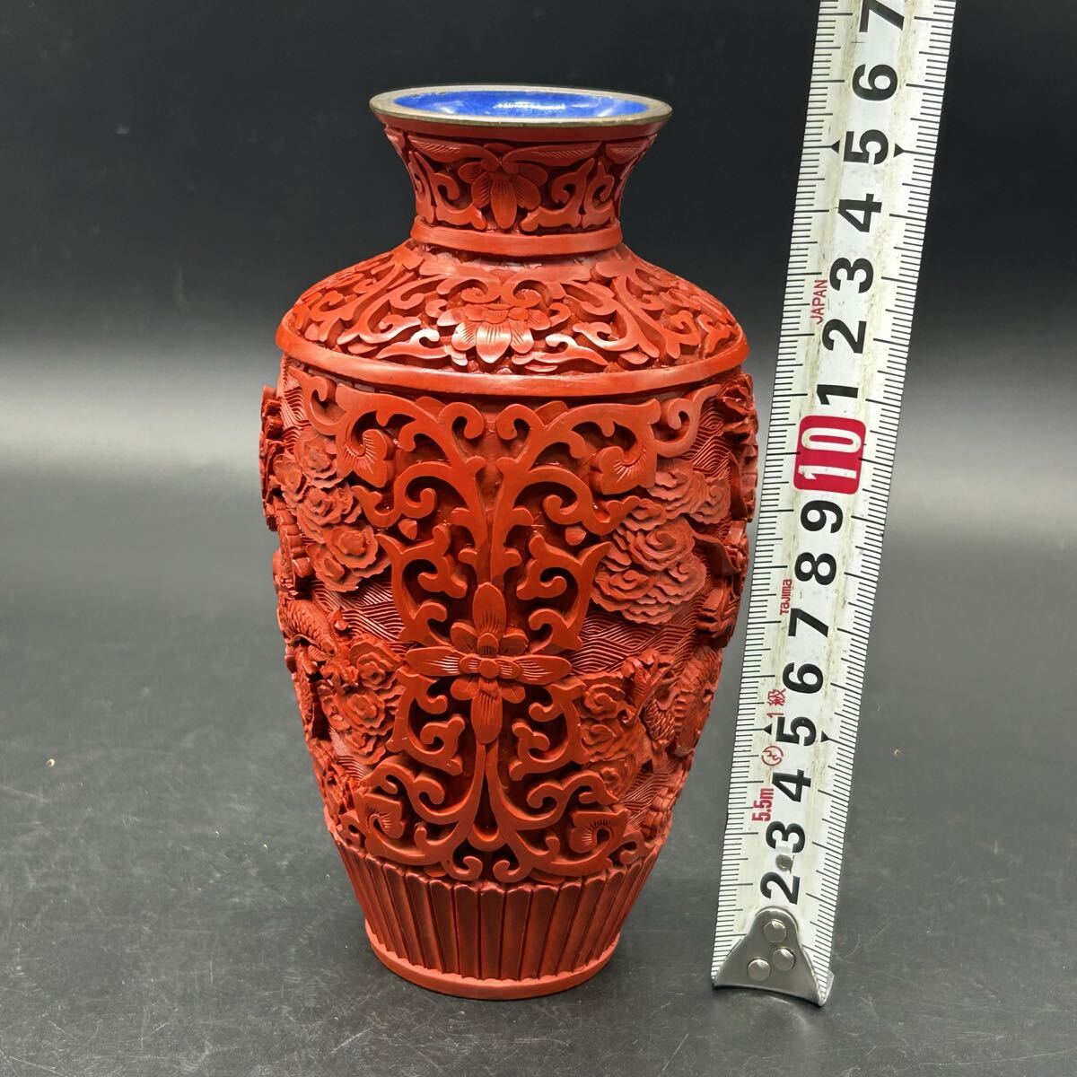 中国美術 堆朱銅胎 花瓶 花器 龍彫 漆器 龍 彫刻 置物 インテリア エ32-8