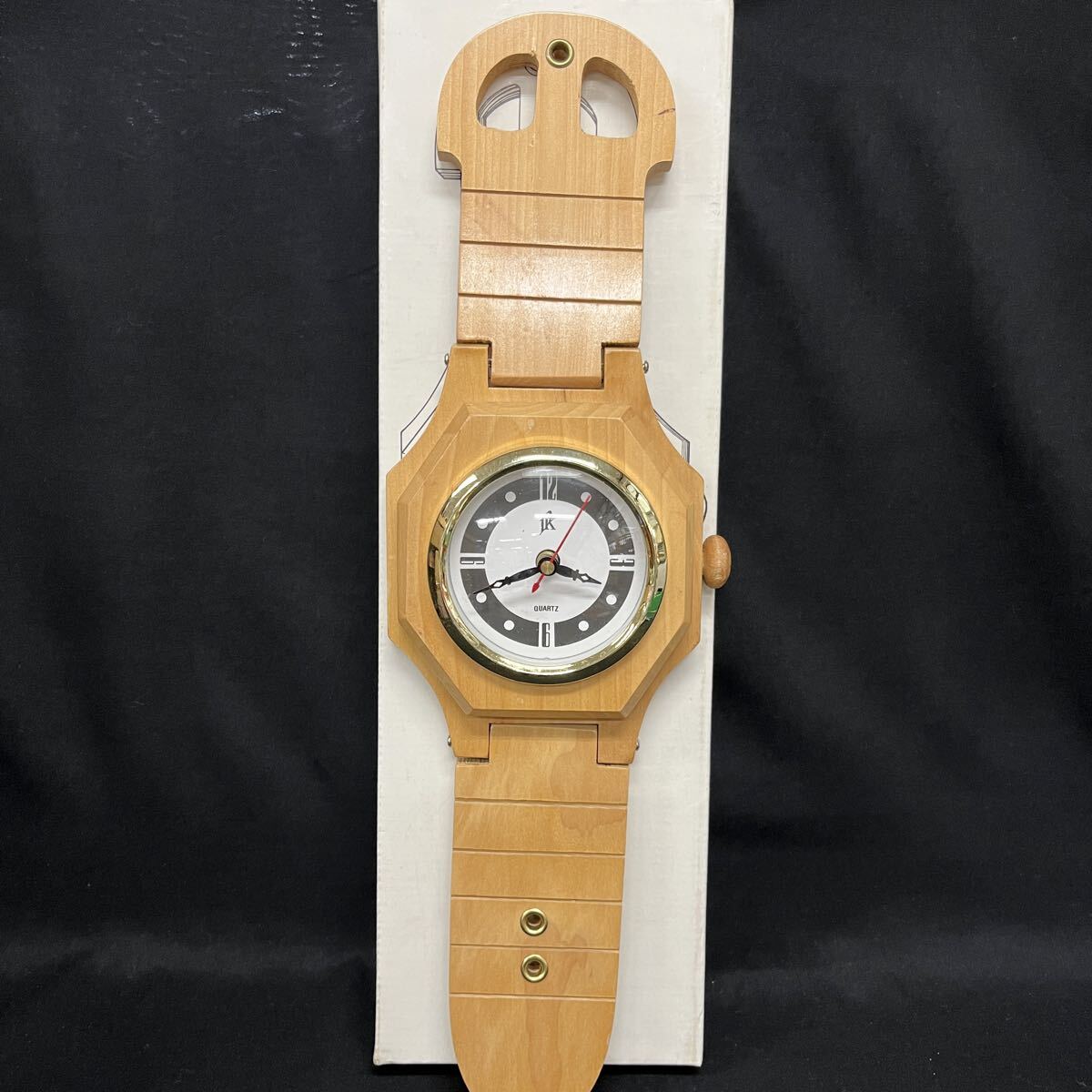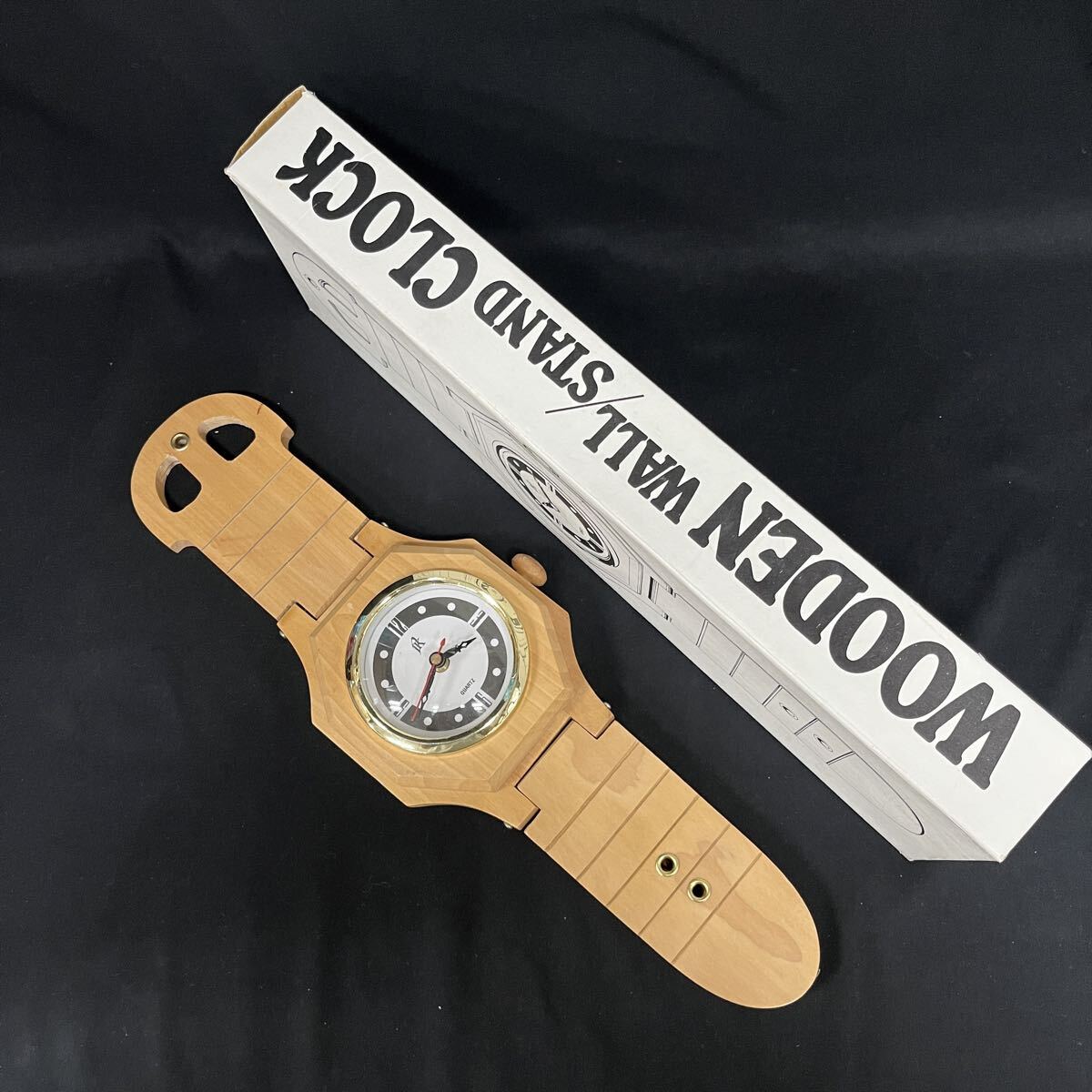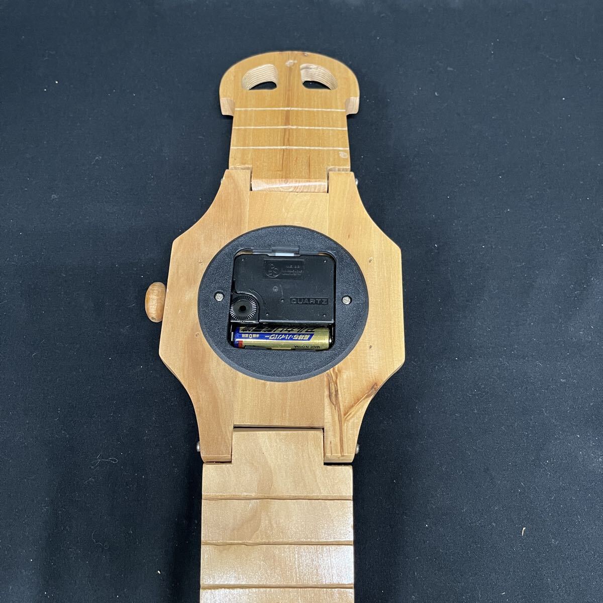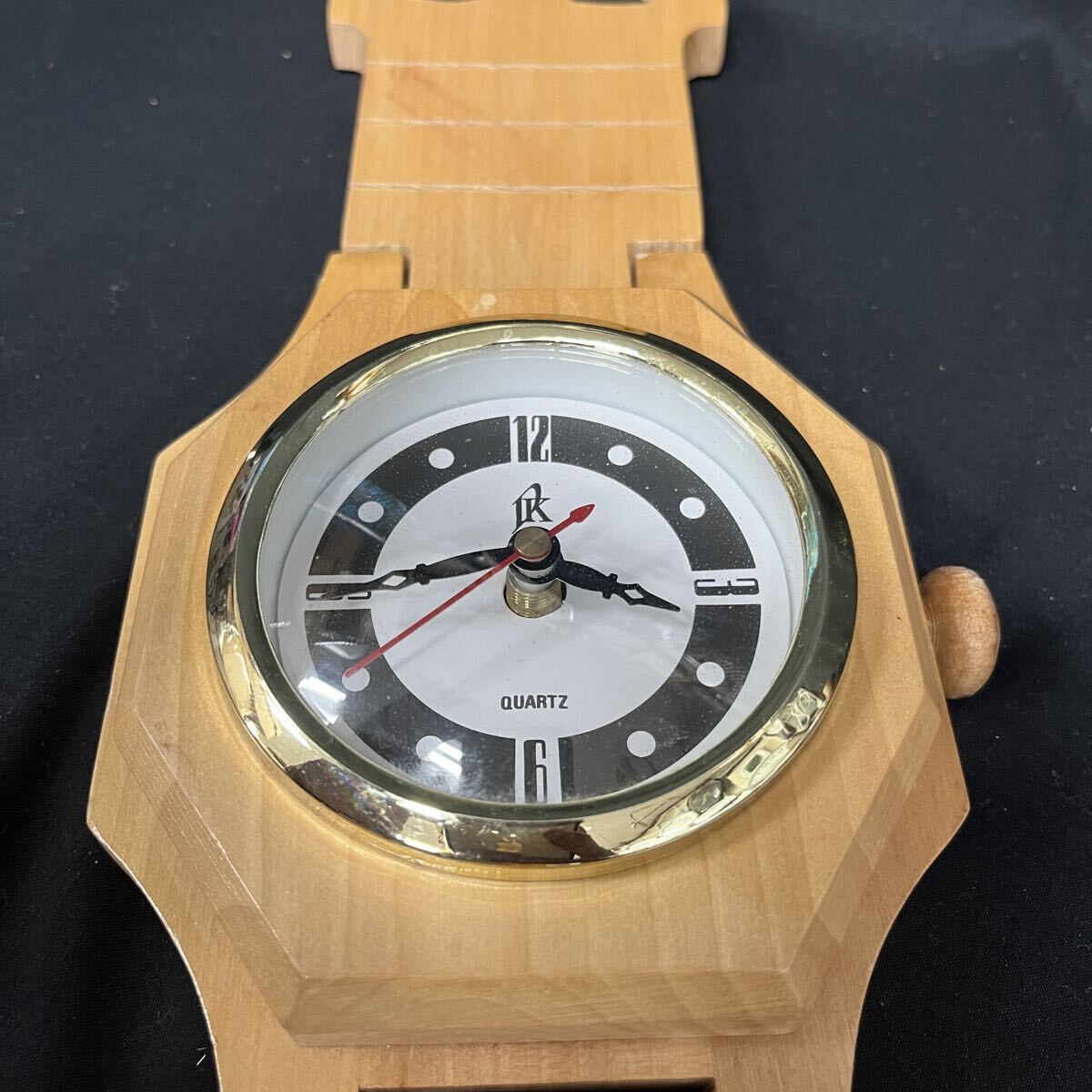 美品 木製 腕時計型 壁掛け時計 柱時計 稼働品 クォーツ インテリア(08197チ)