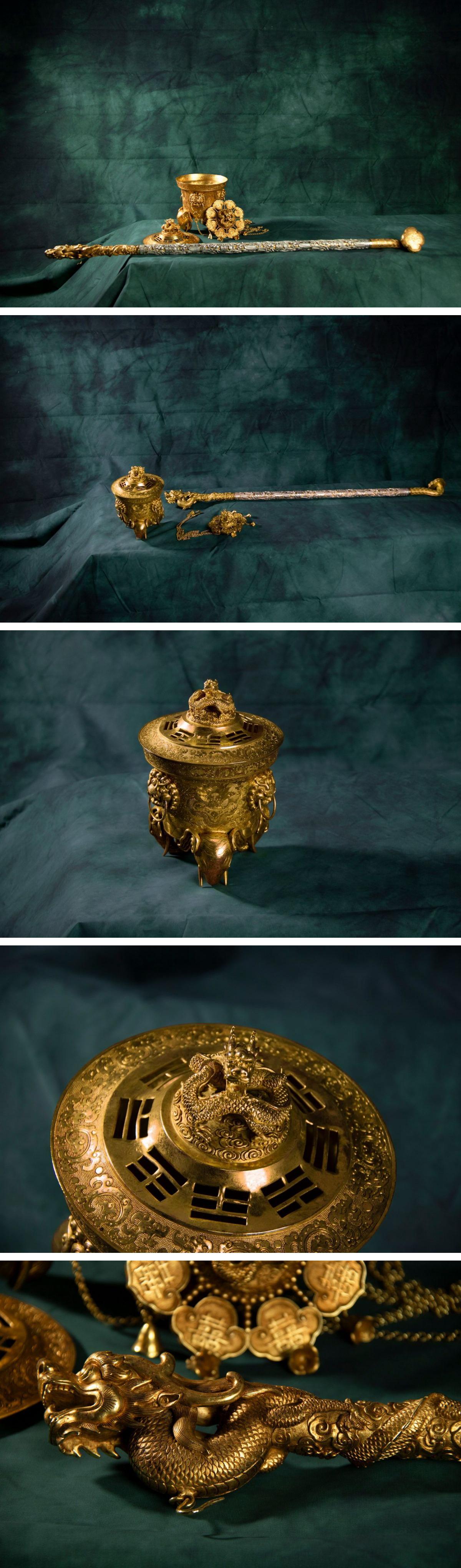 【清】某有名オークション購入 清時代 銅金 鳳首薫香爐 希少 金水厚重 古置物 古擺件 中国伝来 古美術 時代コレクション7L6-BBR15