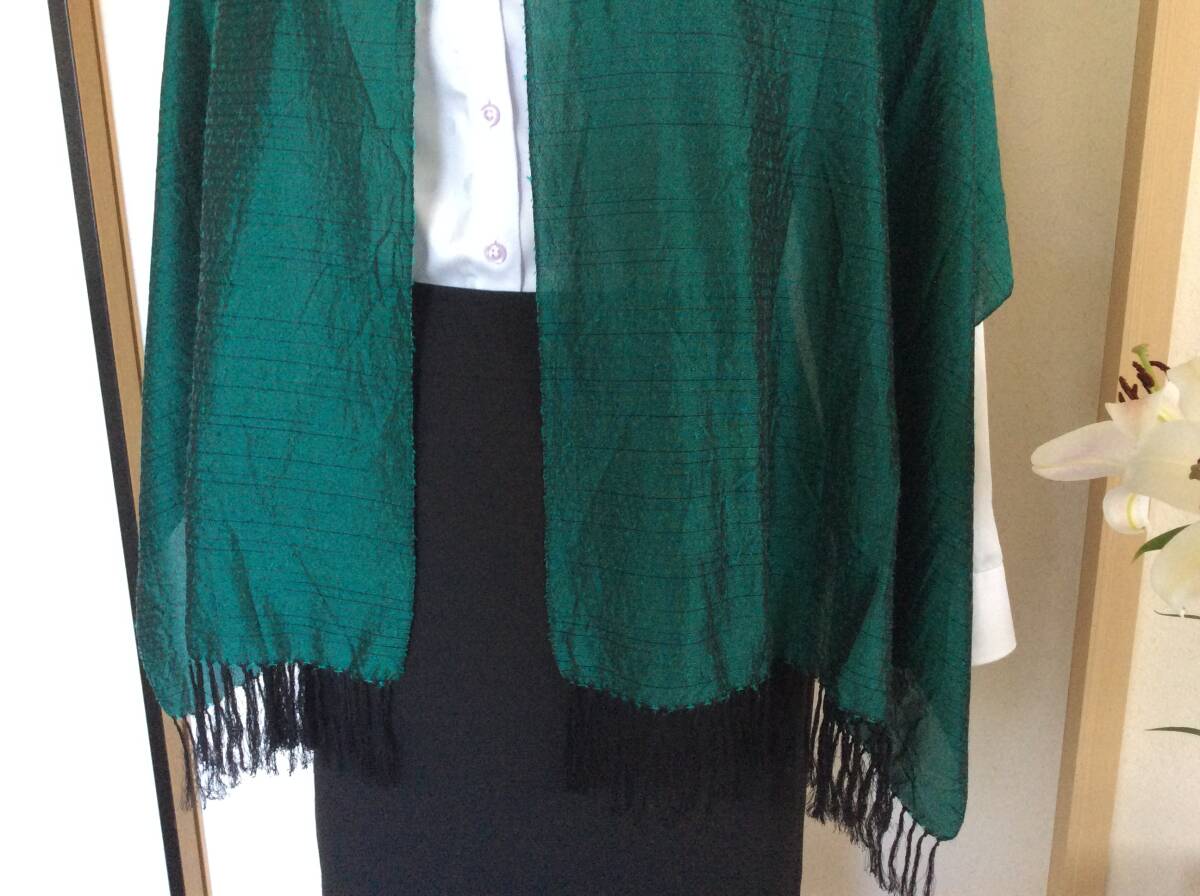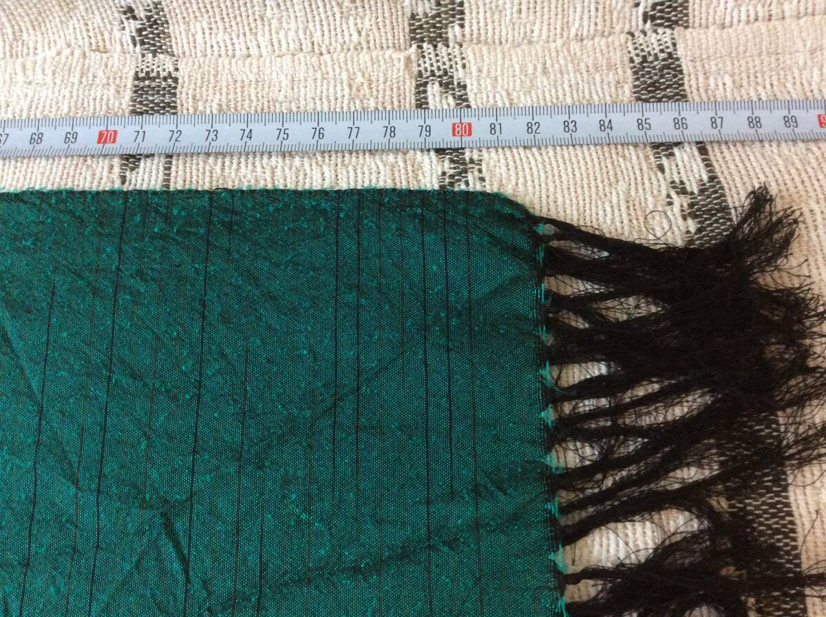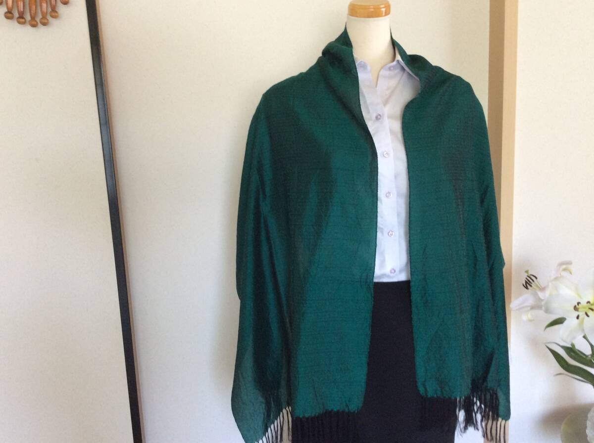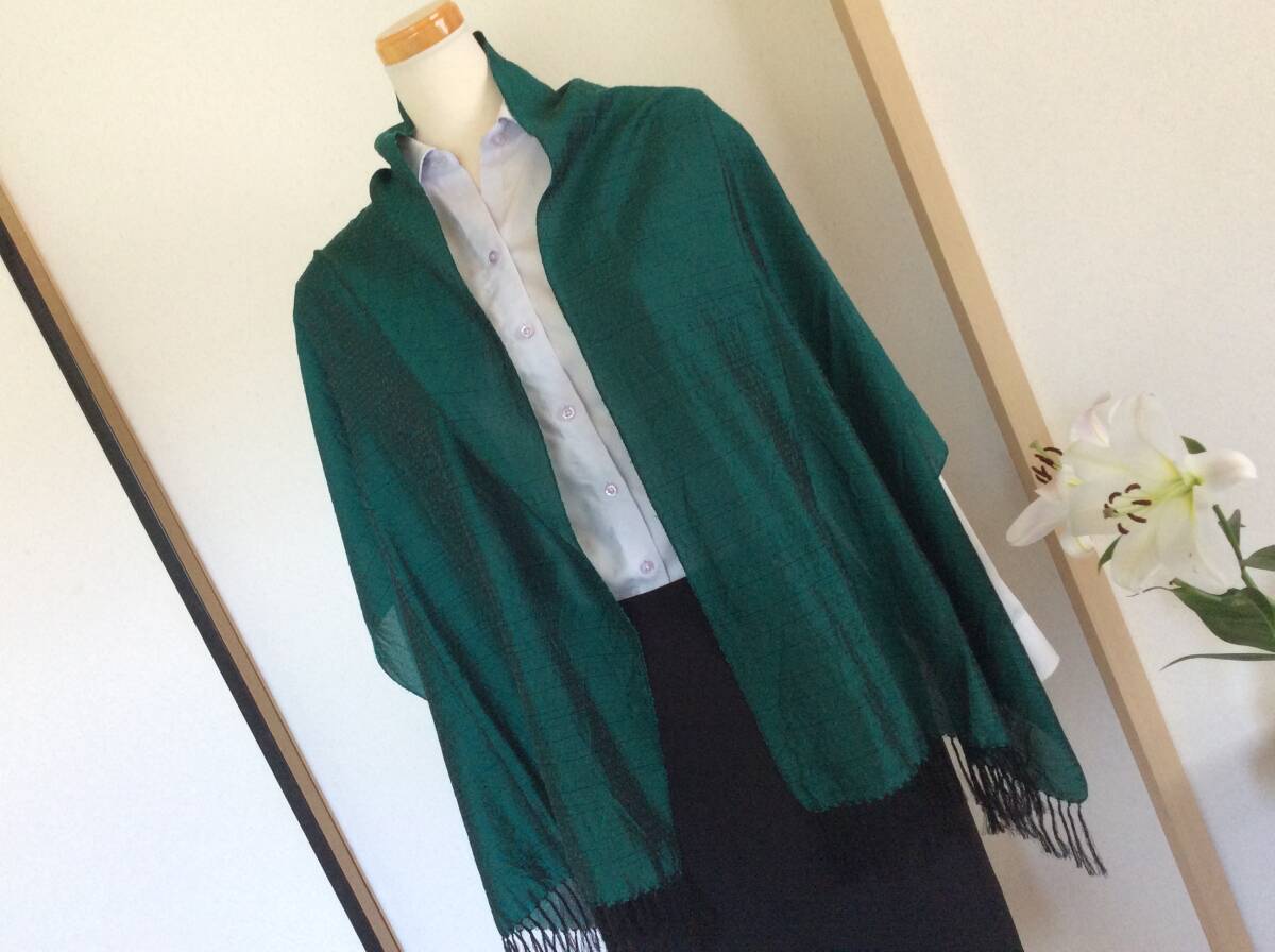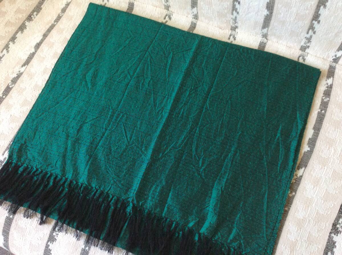 即決 中古 大島紬 泥染め グリーン系 絹100% 大判ストール 岡島デパート催事購入 レターパック込 8月19日初出品 購入価格25000円