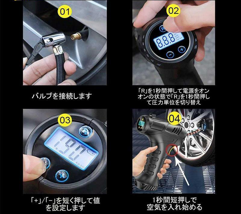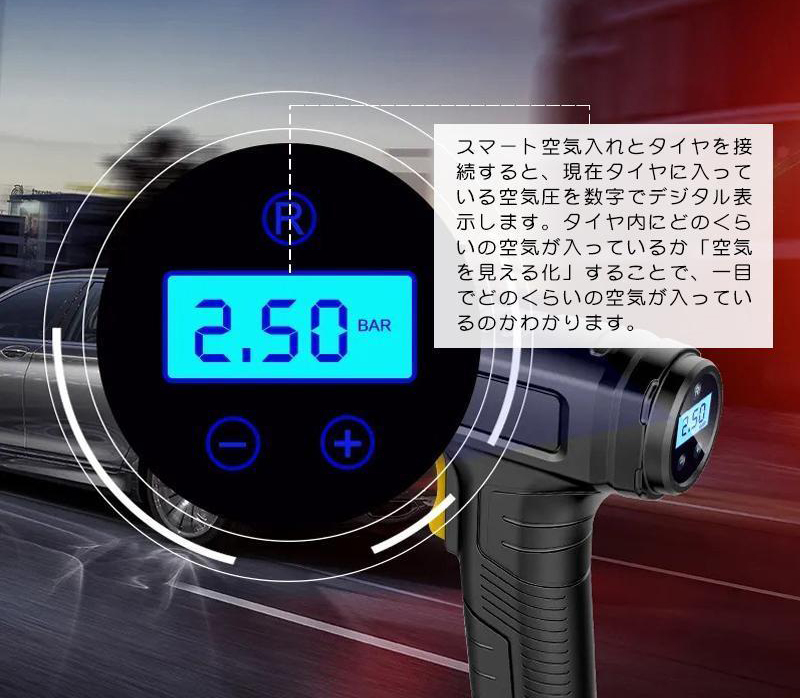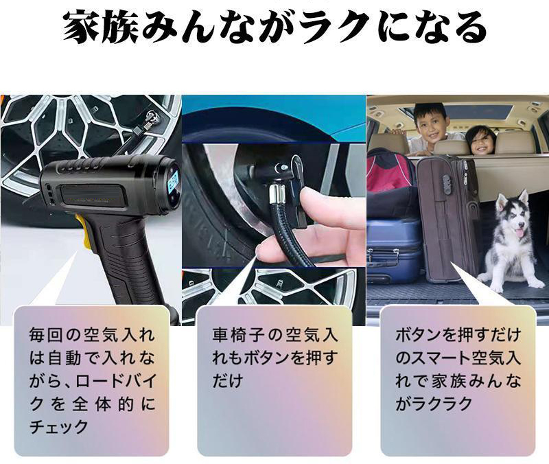 エアーコンプレッサー 電動空気入れ 給電式 LEDライト付き エアーポンプ インフレータブル 携帯ポンプ ポータブル 車 自転車