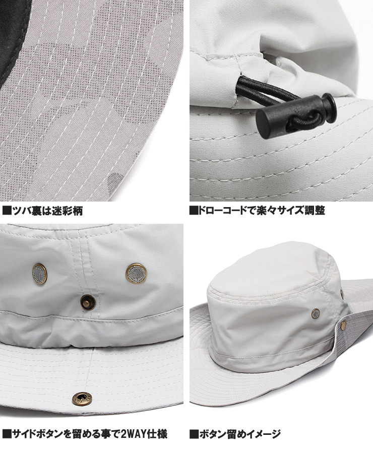 | 商品名 | 【新品】 F 58cm Lグレー 撥水 アドベンチャーハット メンズ 大きいサイズ 選べるサイズ 紐付き テフロン加工 アウトドア サファリハット |