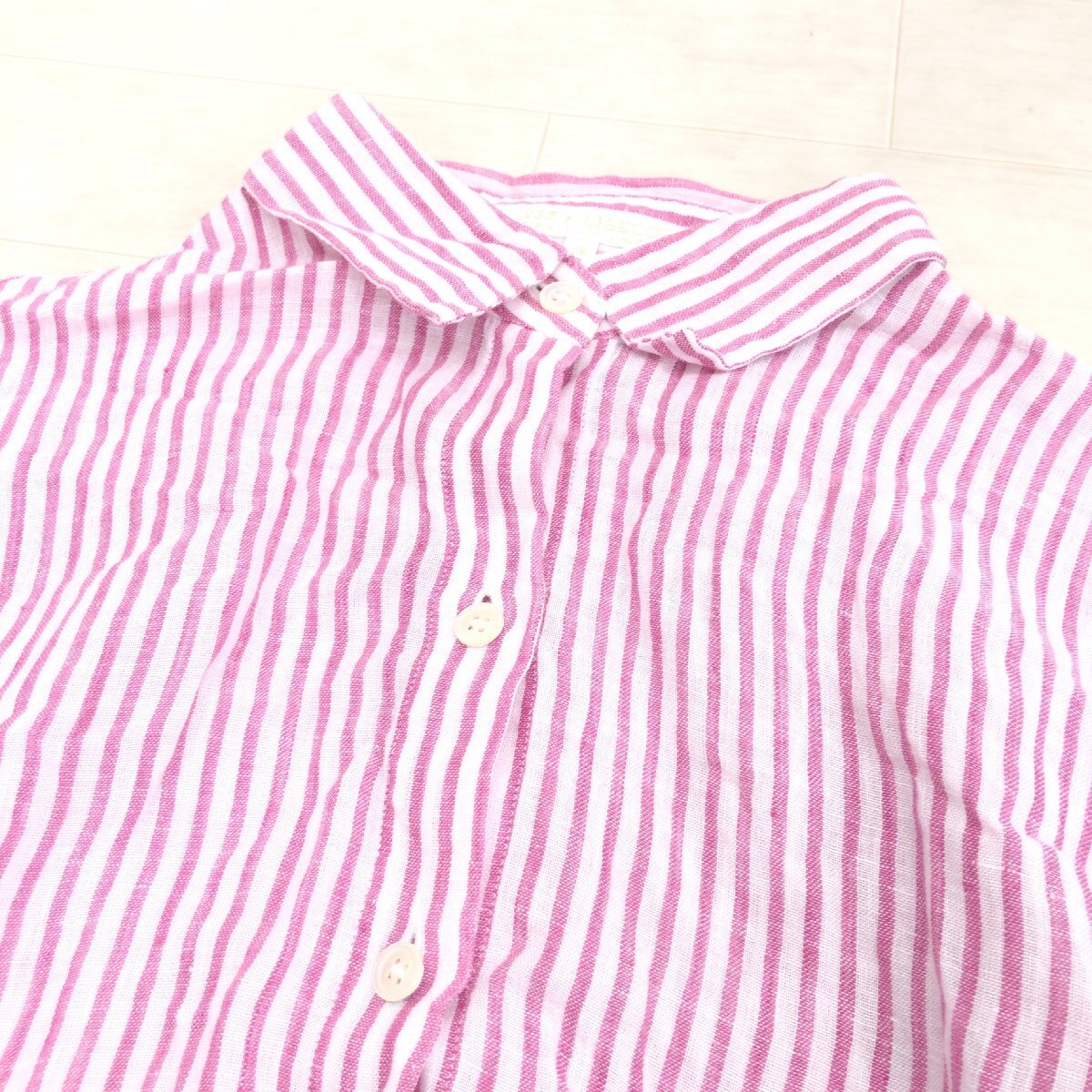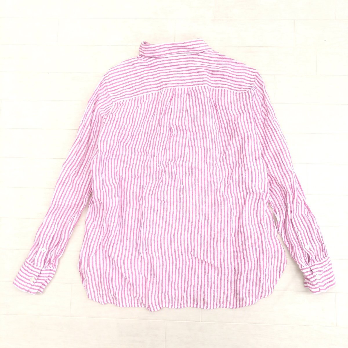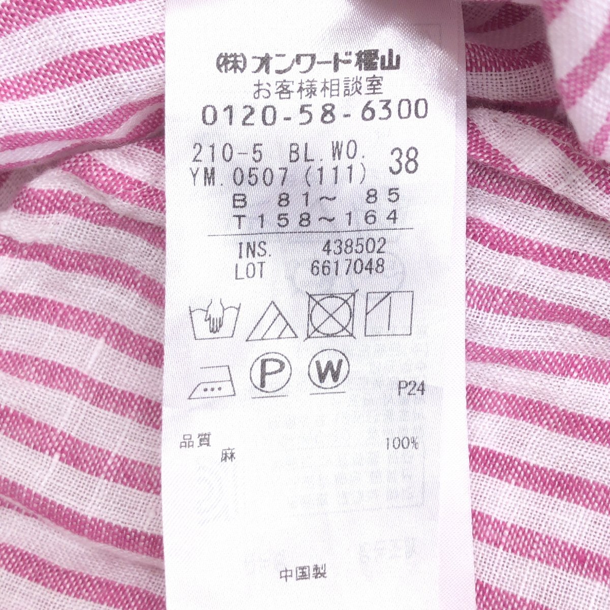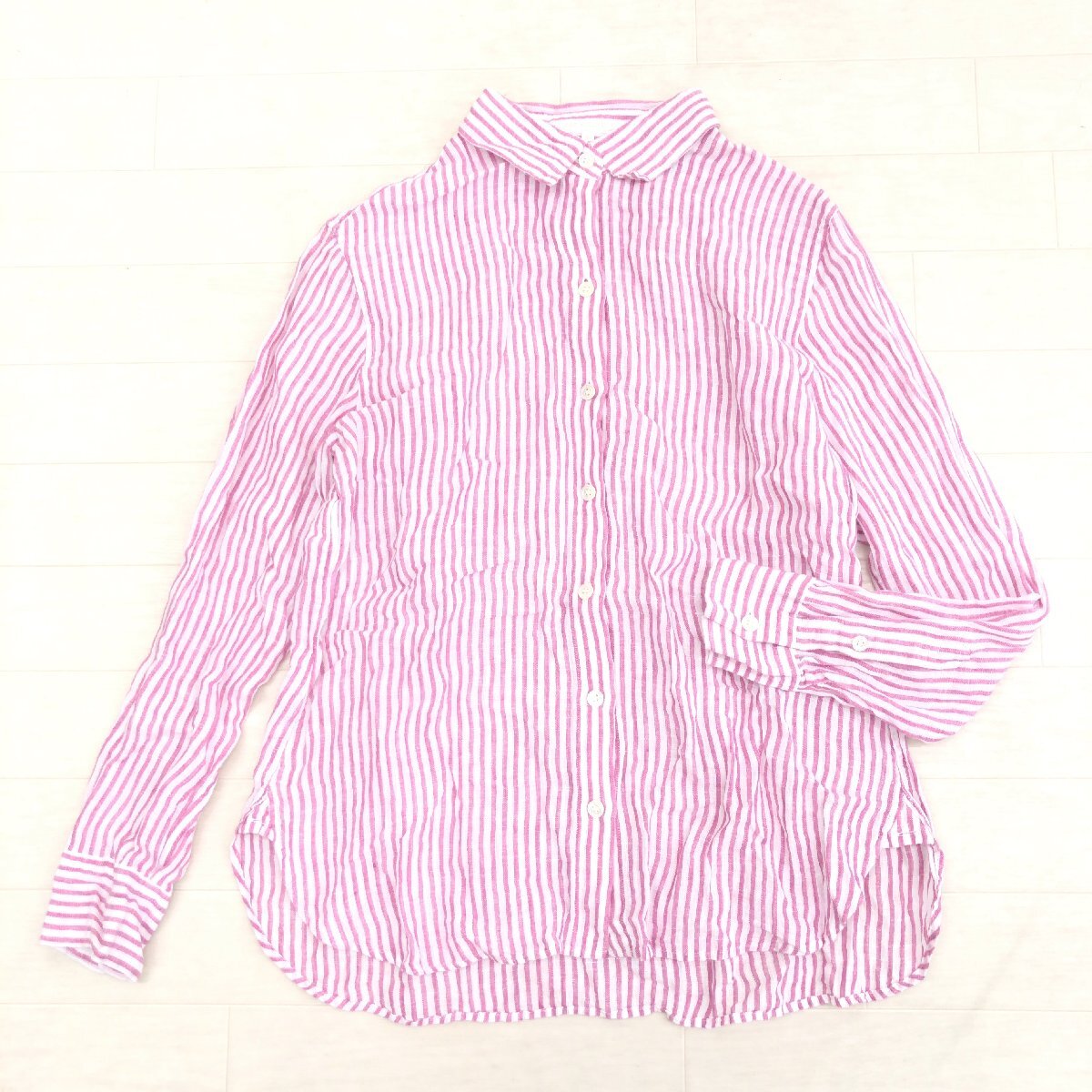 美品 23区×LIBECO ニジュウサンク 麻 リネン100% ストライプ シャツ 38(M) 白 ホワイト×ボルドー ブラウス 長袖 レディース 女性用 婦人
