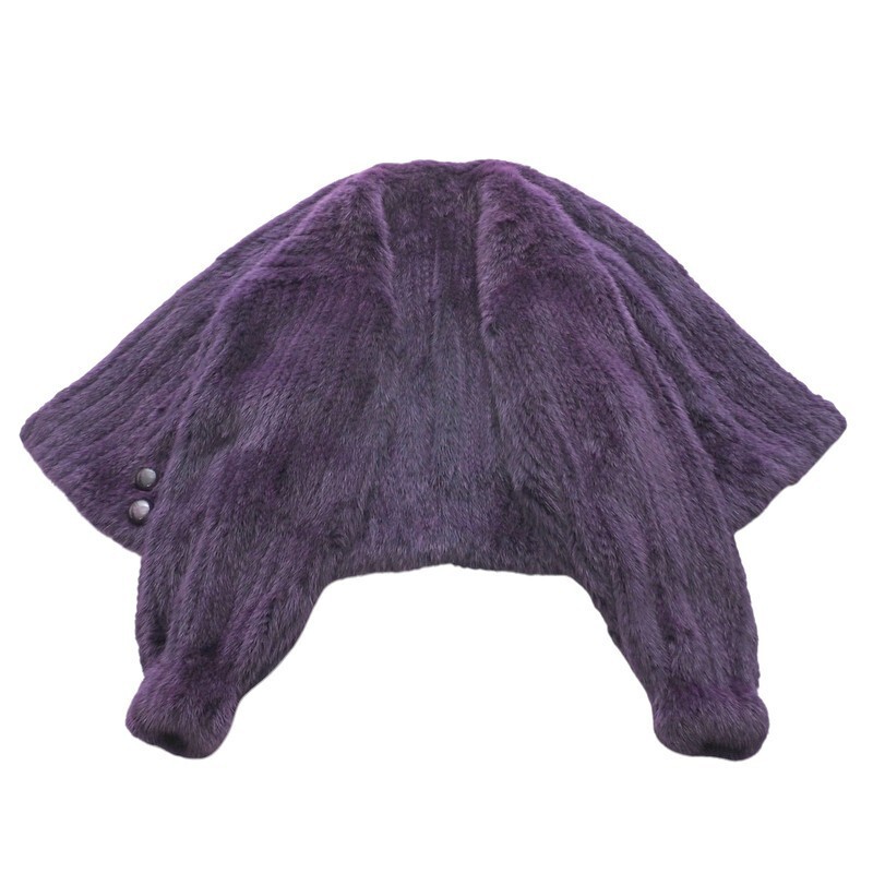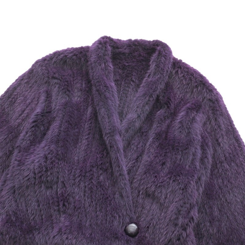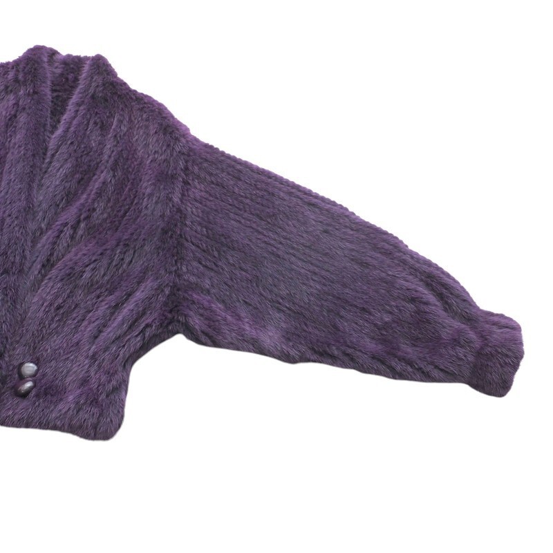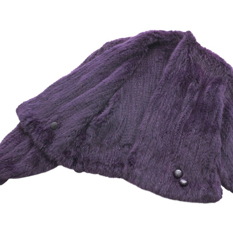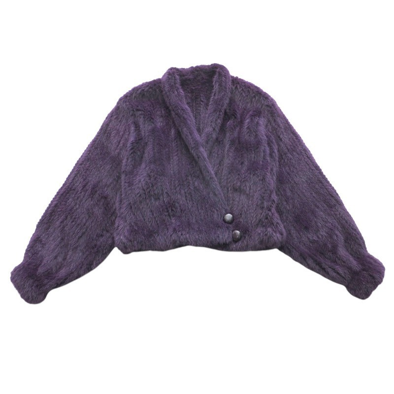 | GR9750◇ミンクヤーン 編み込み ファージャケット ファーコート 毛皮コート ショート丈 パープル系 M-L相当 | |||