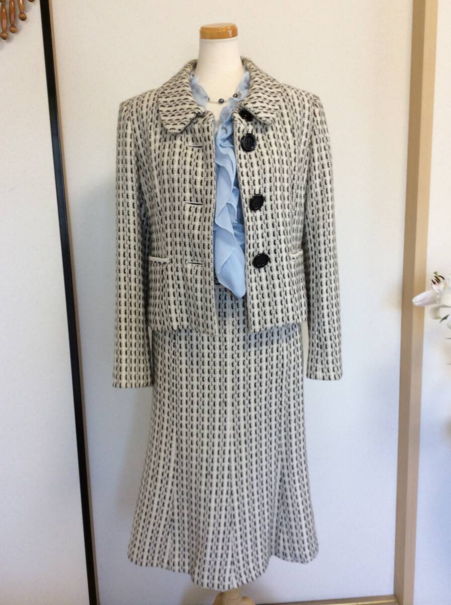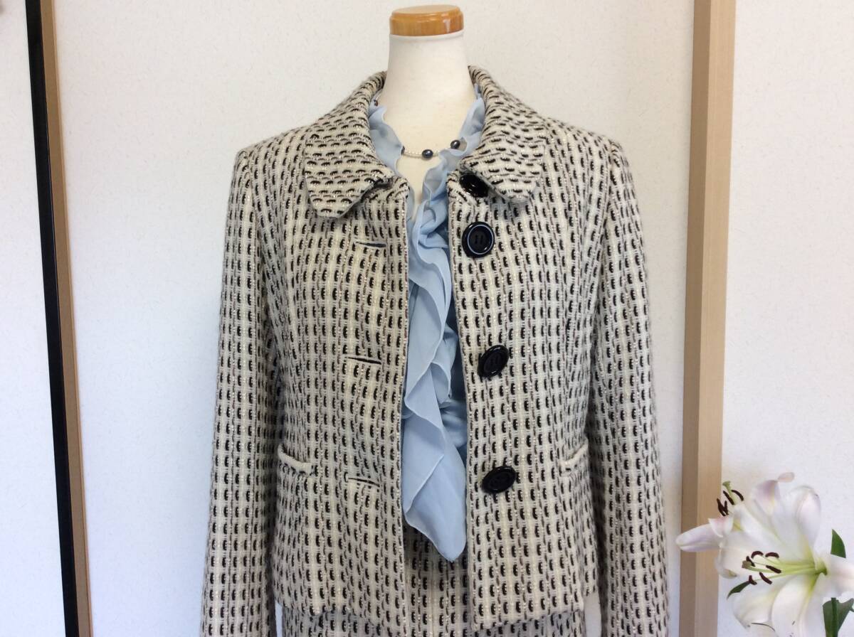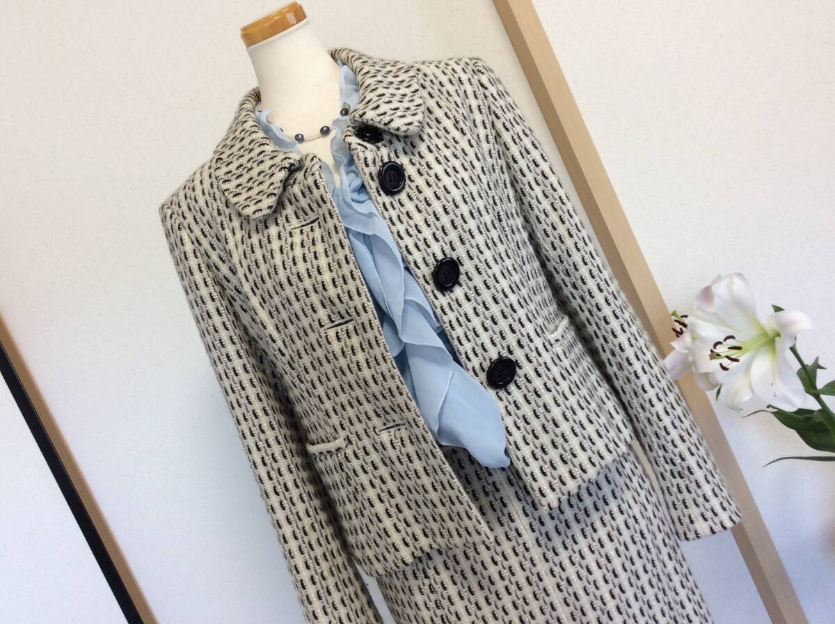 値下げ即決 中古 ワールド WORLD 日本製ツイードセットアップ ジャケットとスカート サイズ40 ゆうパック込み 8月19日初出品