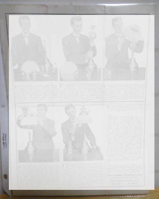 コールマン最初のテーブルランプであるモデルRの大変貴重なオリジナルペーパー資料になります。