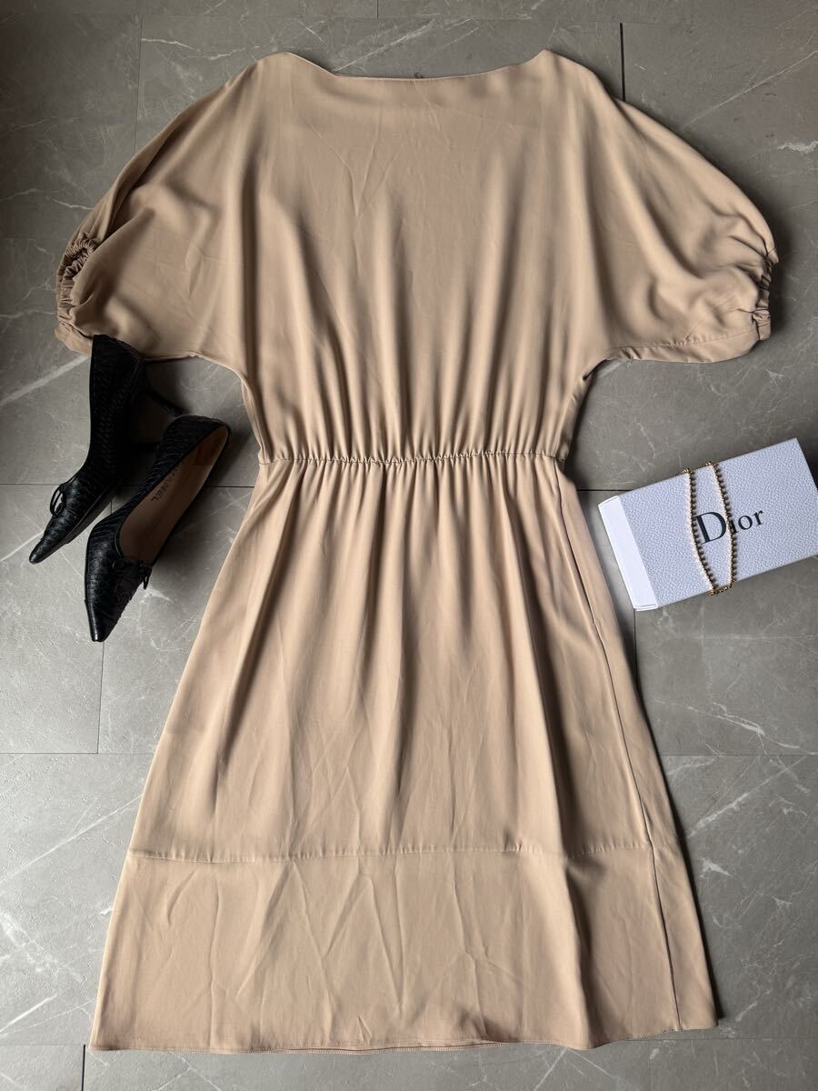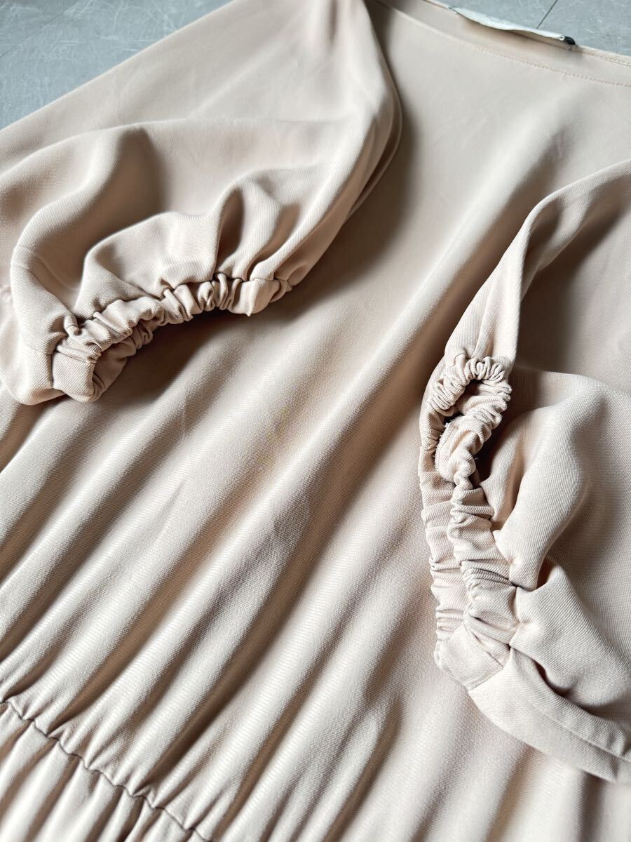 落ち着いたベージュカラーと、袖部分はシャーリングデザインが特徴の、大人かわいい一枚です!
