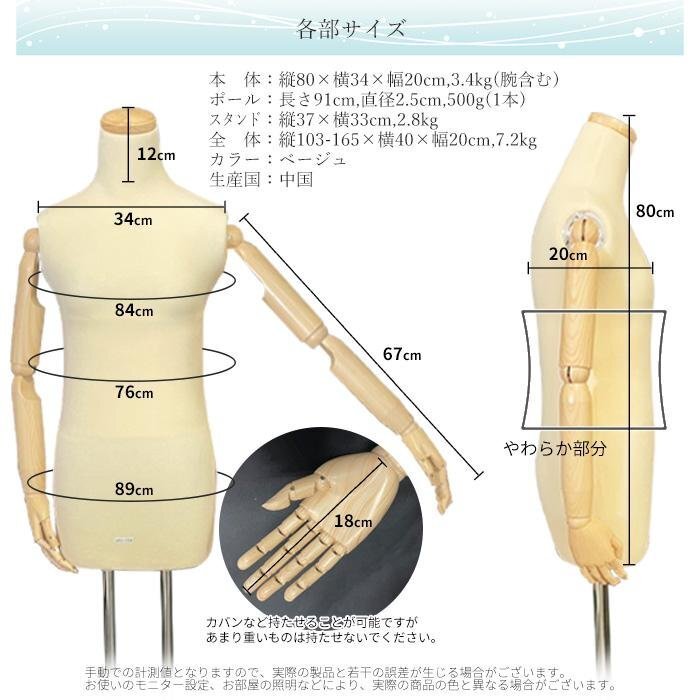 ベージュ色 和装トルソー 腕付きトルソー レディース マネキン 和装ボディ 着付け 着物用 腕 腕付 ###トルソXBBMT-SB-Bベ#