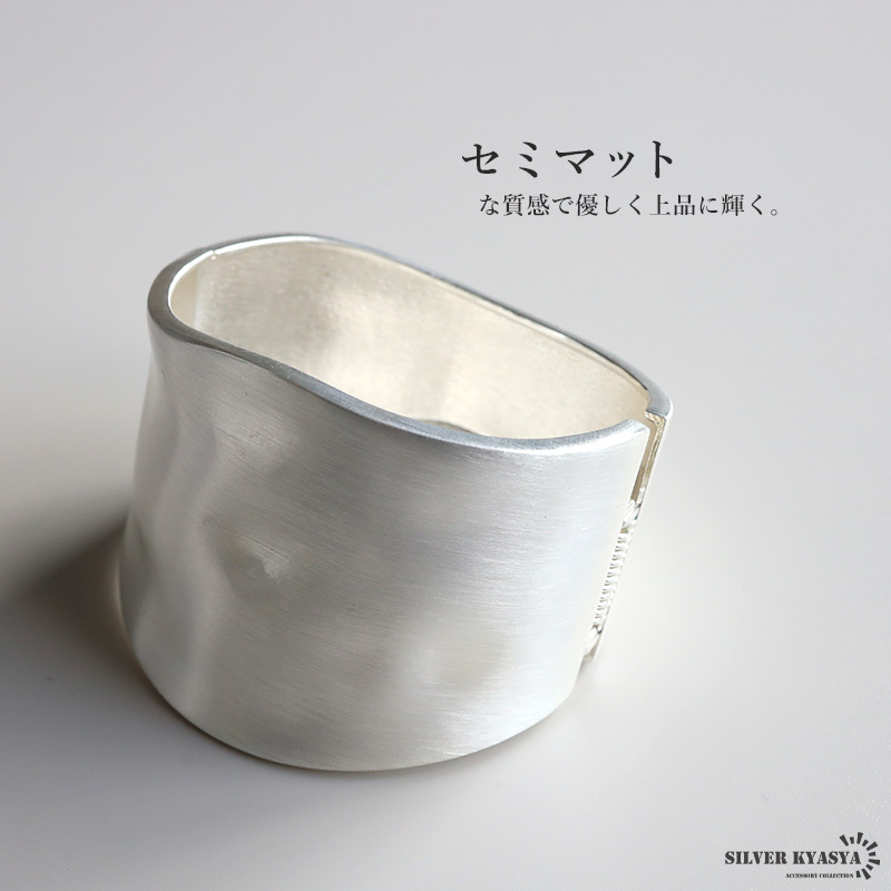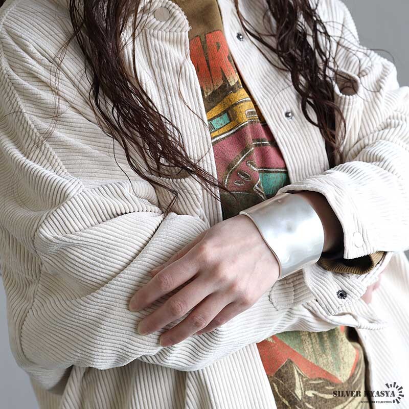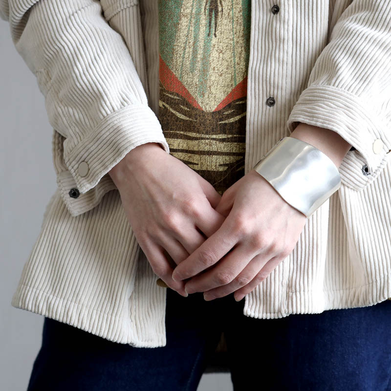 圧倒的存在感を放つ幅55mmワイドバングル。自然なゆがみがニュアンスたっぷりでお洒落な仕上がり。手元に抜群のインパクトを与えます。