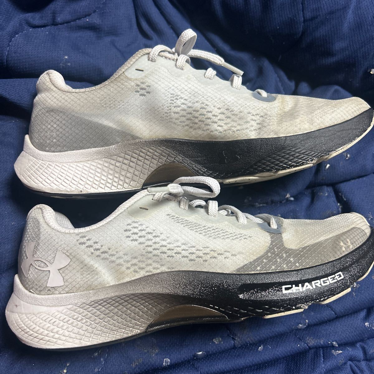 10回程度、ジョギング等に使用。洗えば落ちる程度の汚れあり。目立つダメージは特に無し。発送はレターパックで全国600円にて。激安の千円スタートです♪