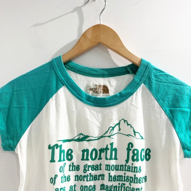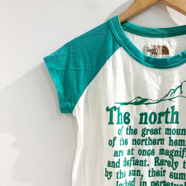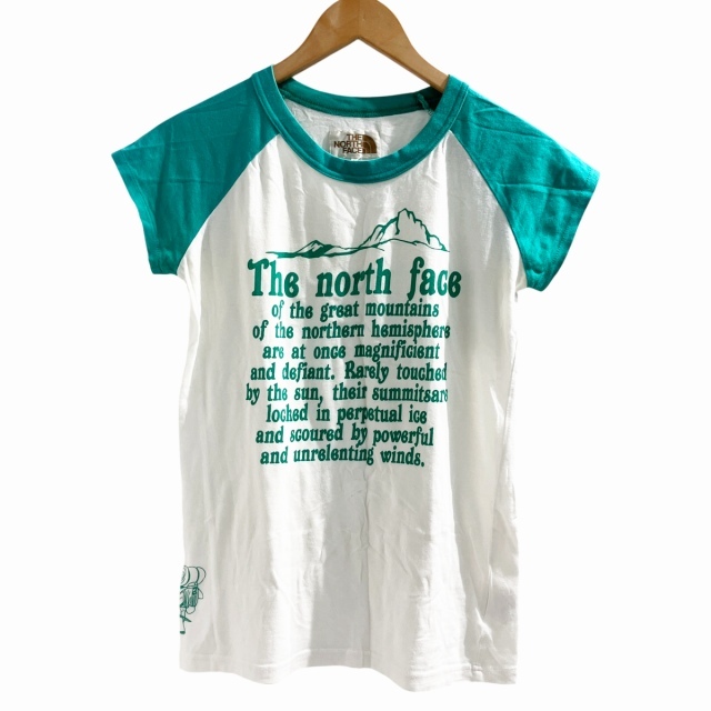 ザノースフェイス THE NORTH FACE Tシャツ カットソー ロゴ 半袖 緑 グリーン 白 ホワイト M ■MET1 レディース