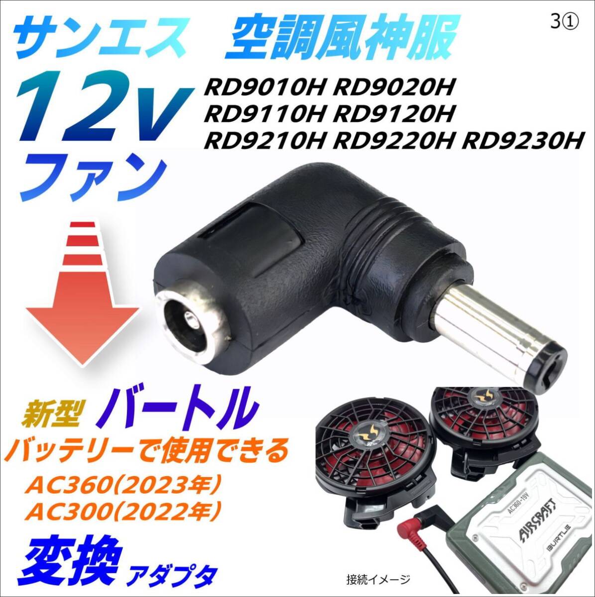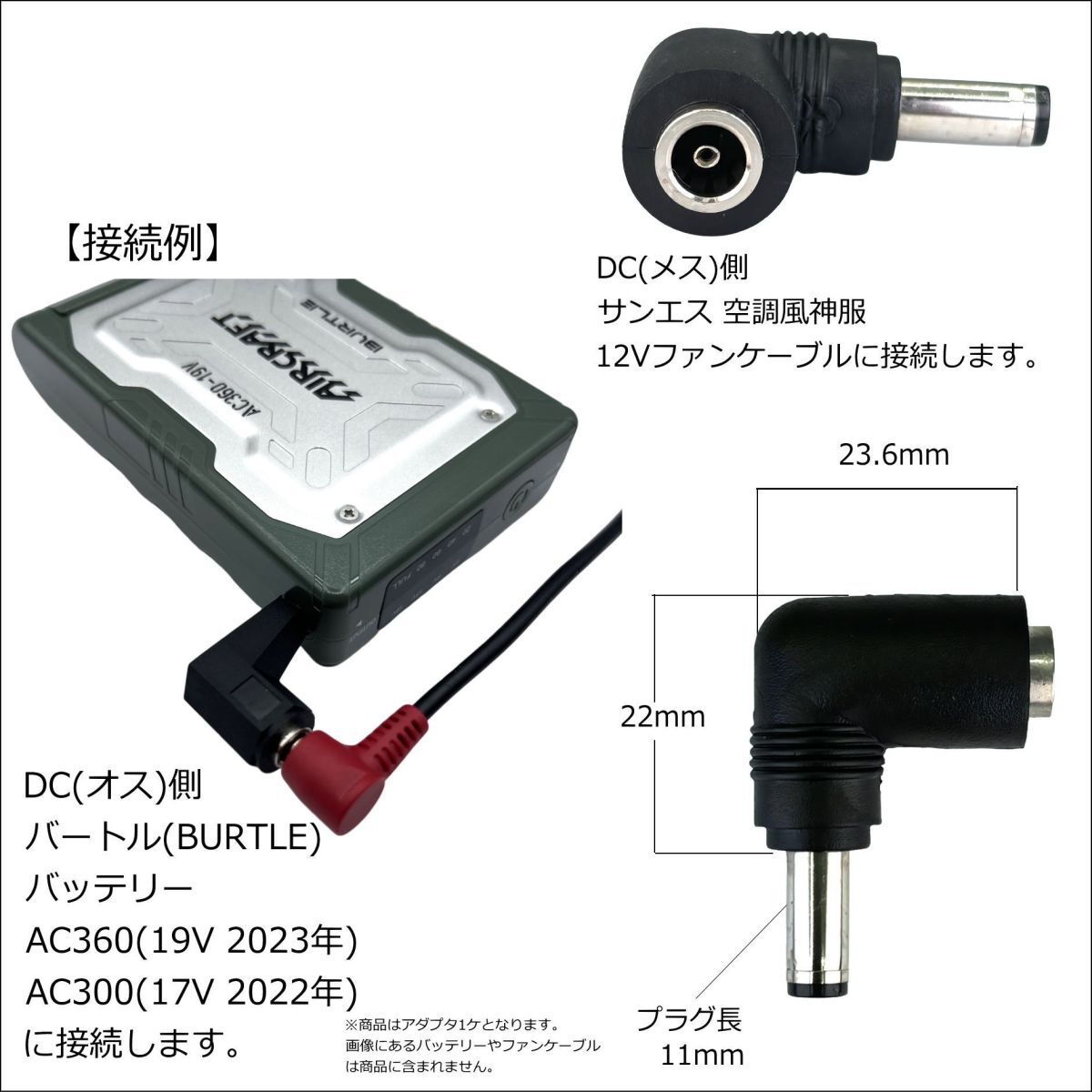 サンエス 空調風神服 12Vファン をバートル(BURTLE) AC360(19V 2023年)バッテリーで使える変換アダプタ3①