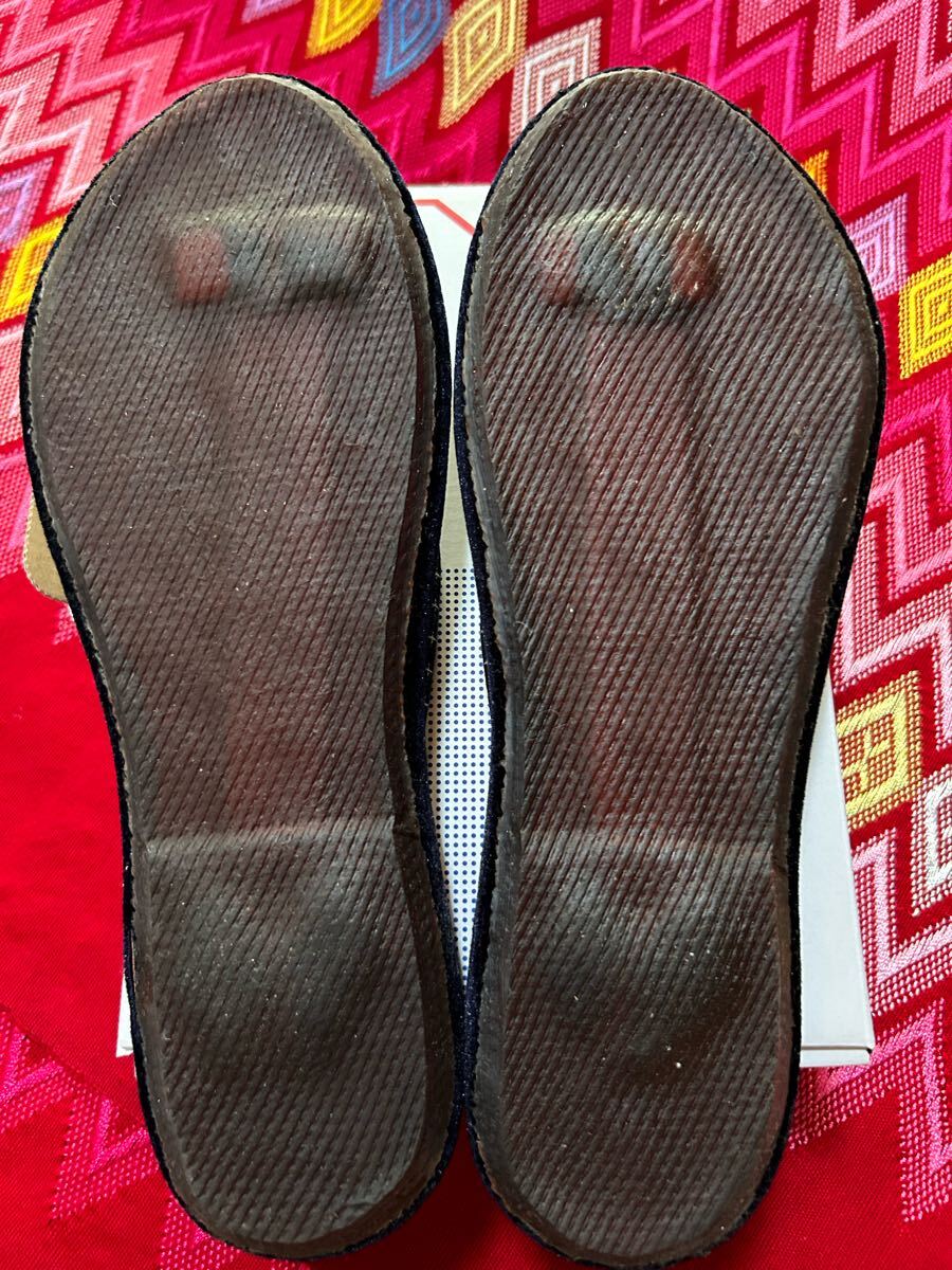 地は光沢のあるベロア素材で鼻緒は綿です。