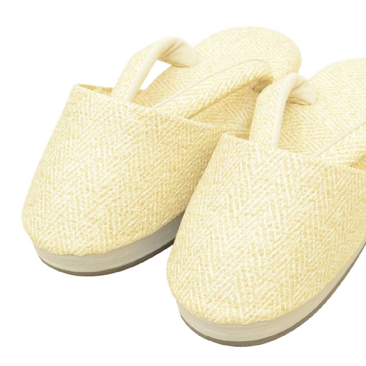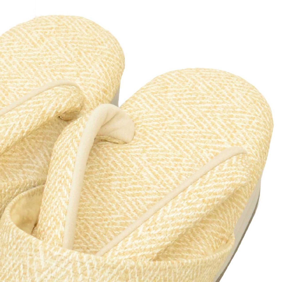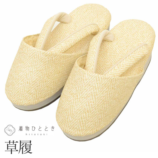 ベージュ色に幾何学文様が施された女性用のリサイクル草履です。