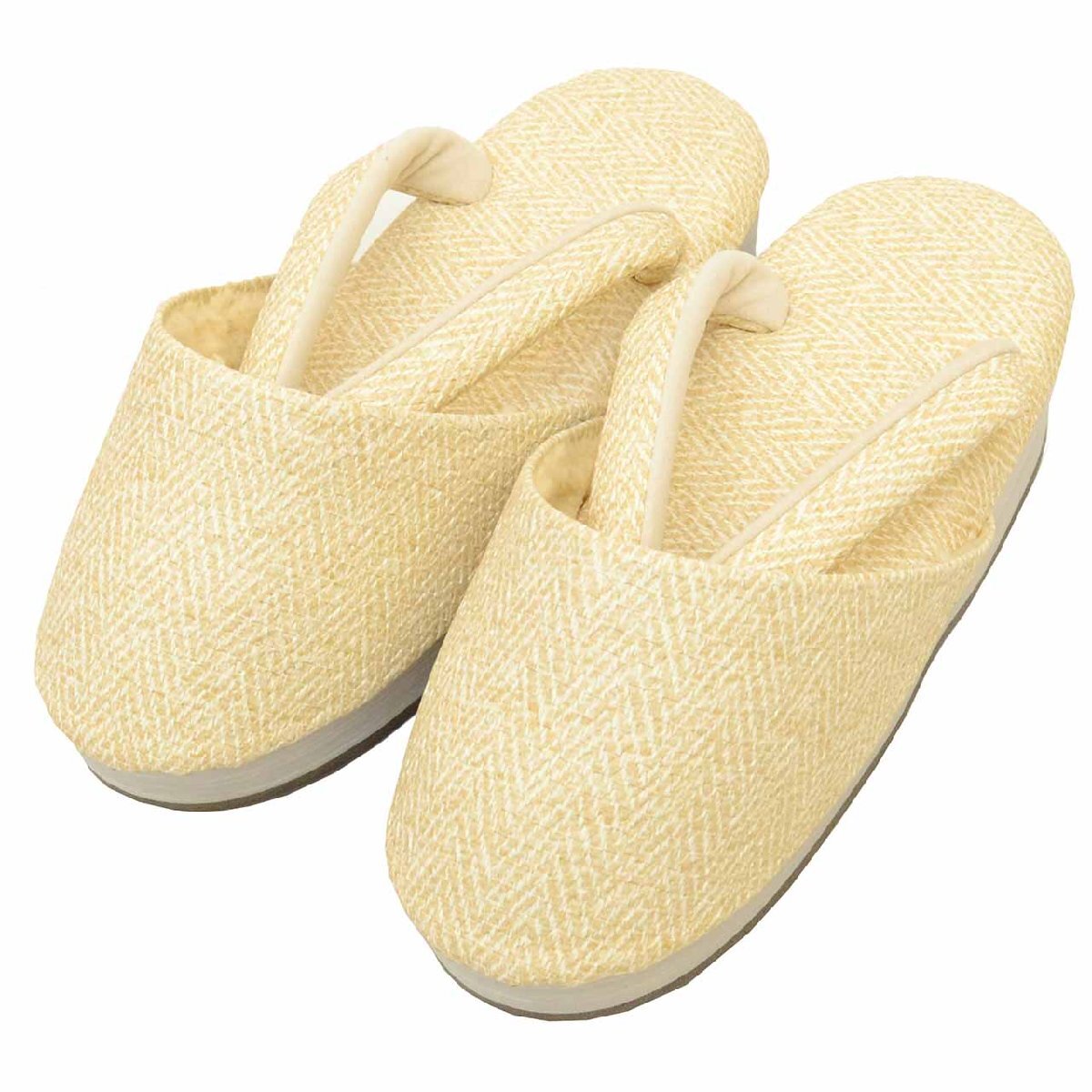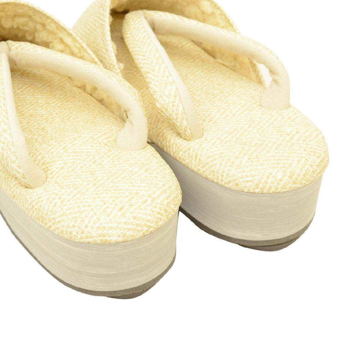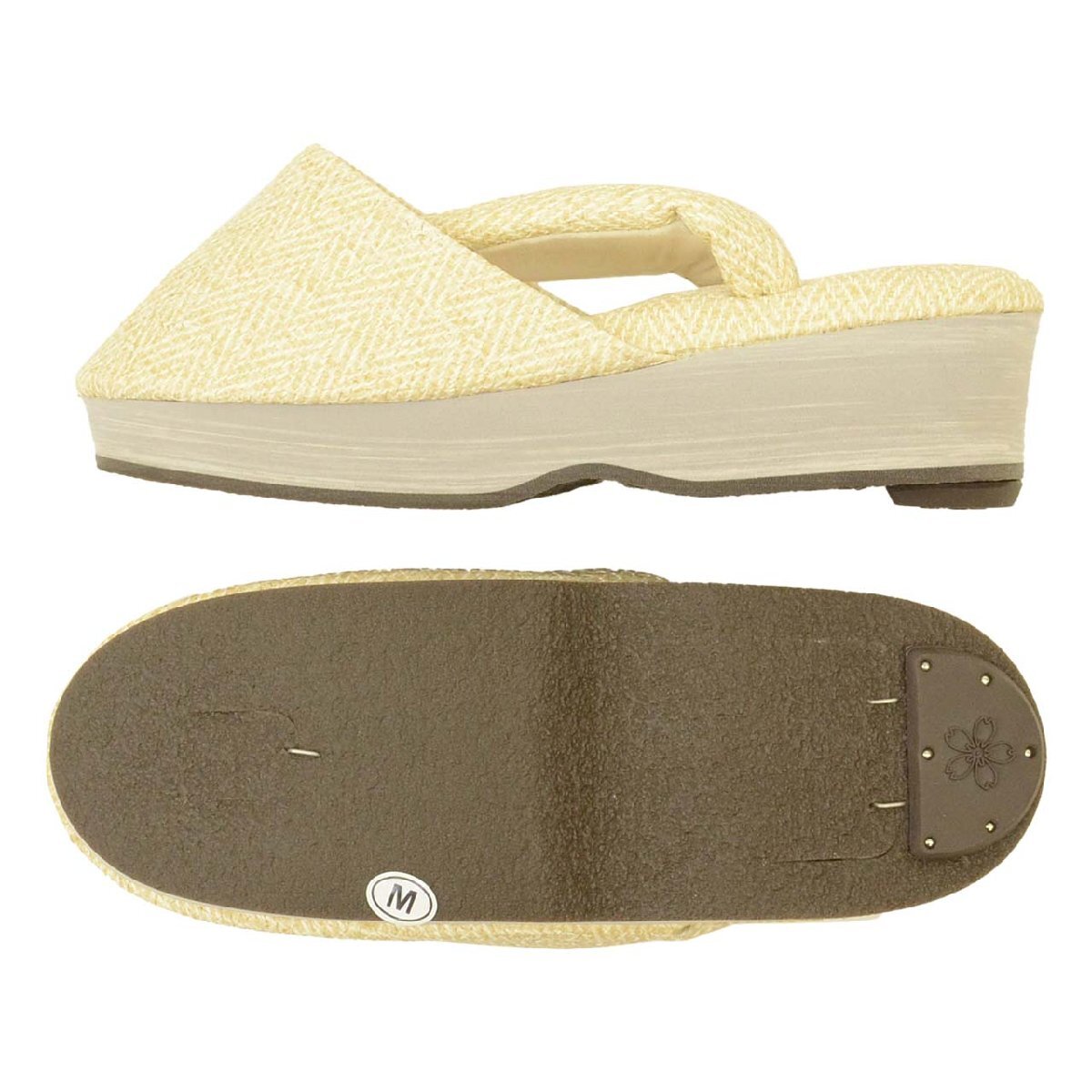 ベージュ色に幾何学文様が施された女性用のリサイクル草履です。