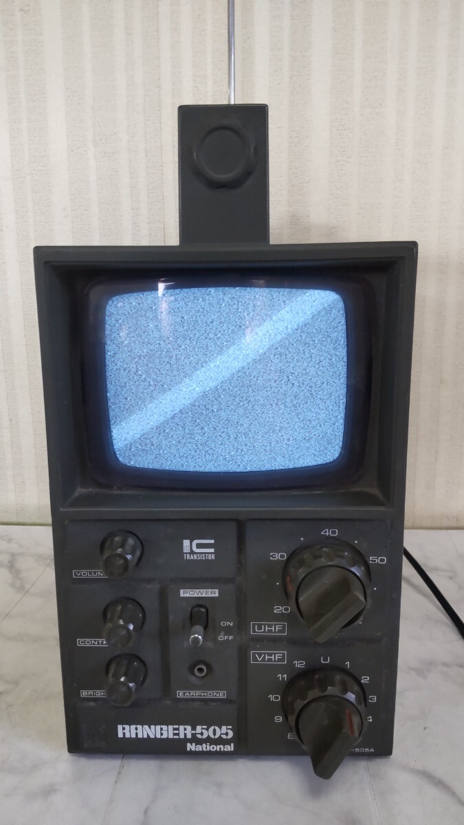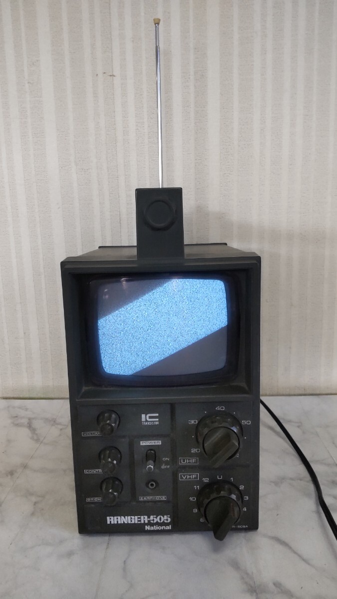 S3347 National/TR-505A/TRANSISTOR TV/75年製/ 昭和レトロ/小型白黒テレビ/モノクロテレビ/ナショナル 通電○ 動作詳細本文参照 現状品 JUNK