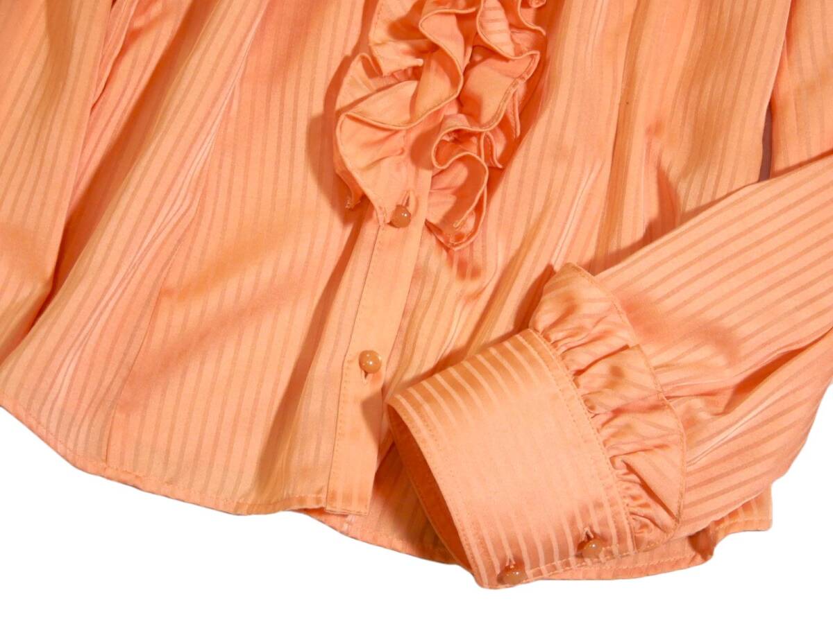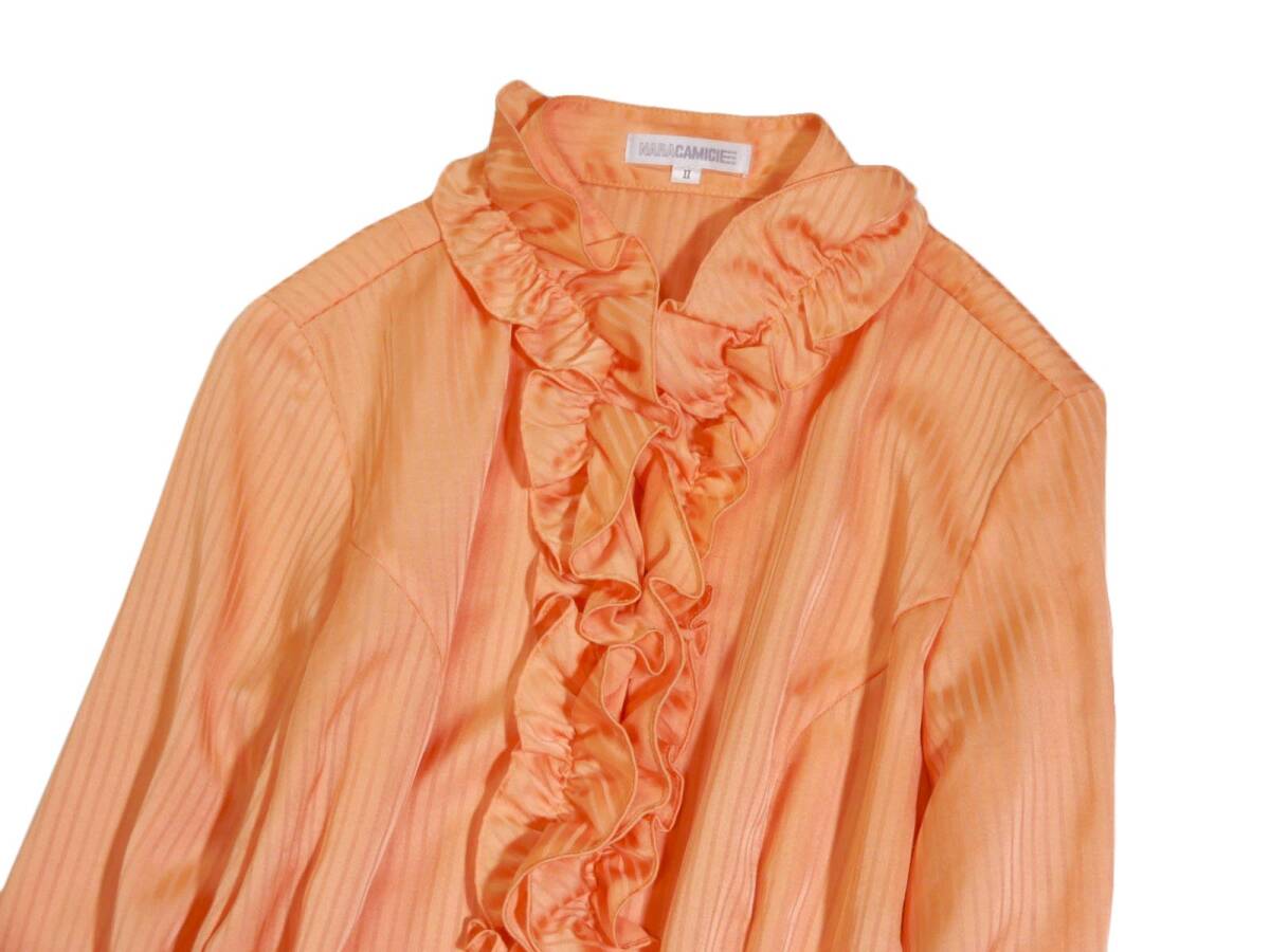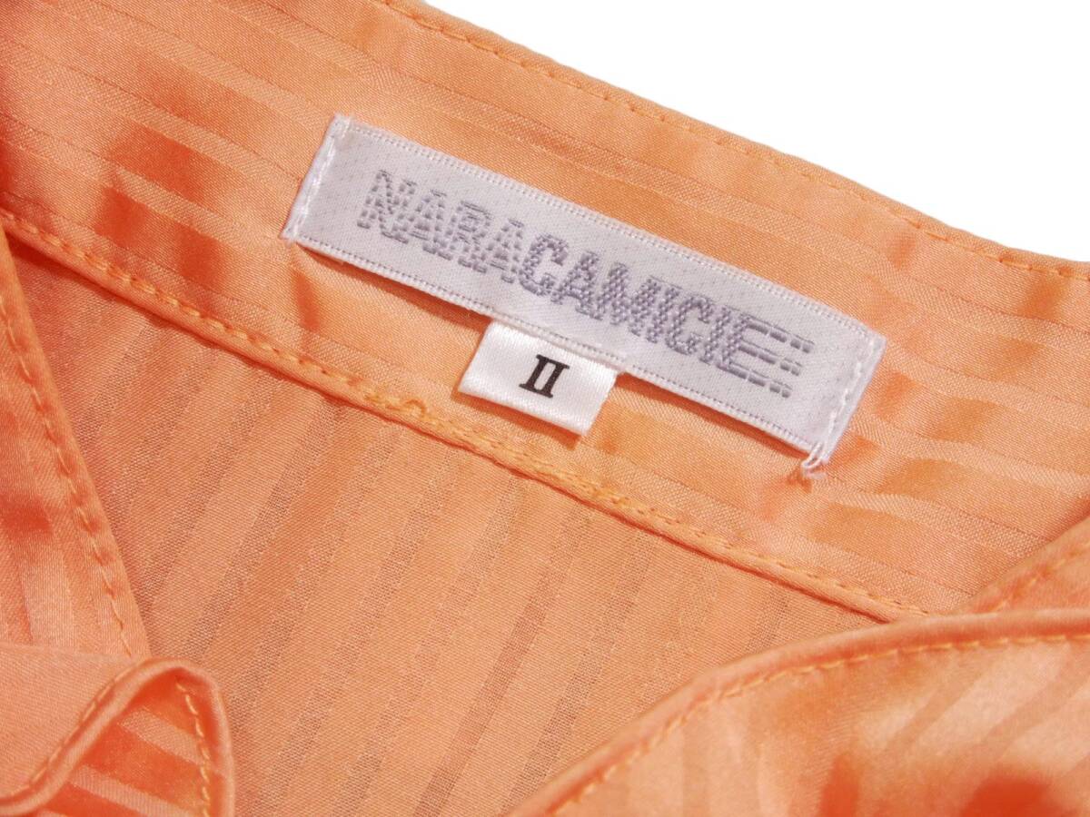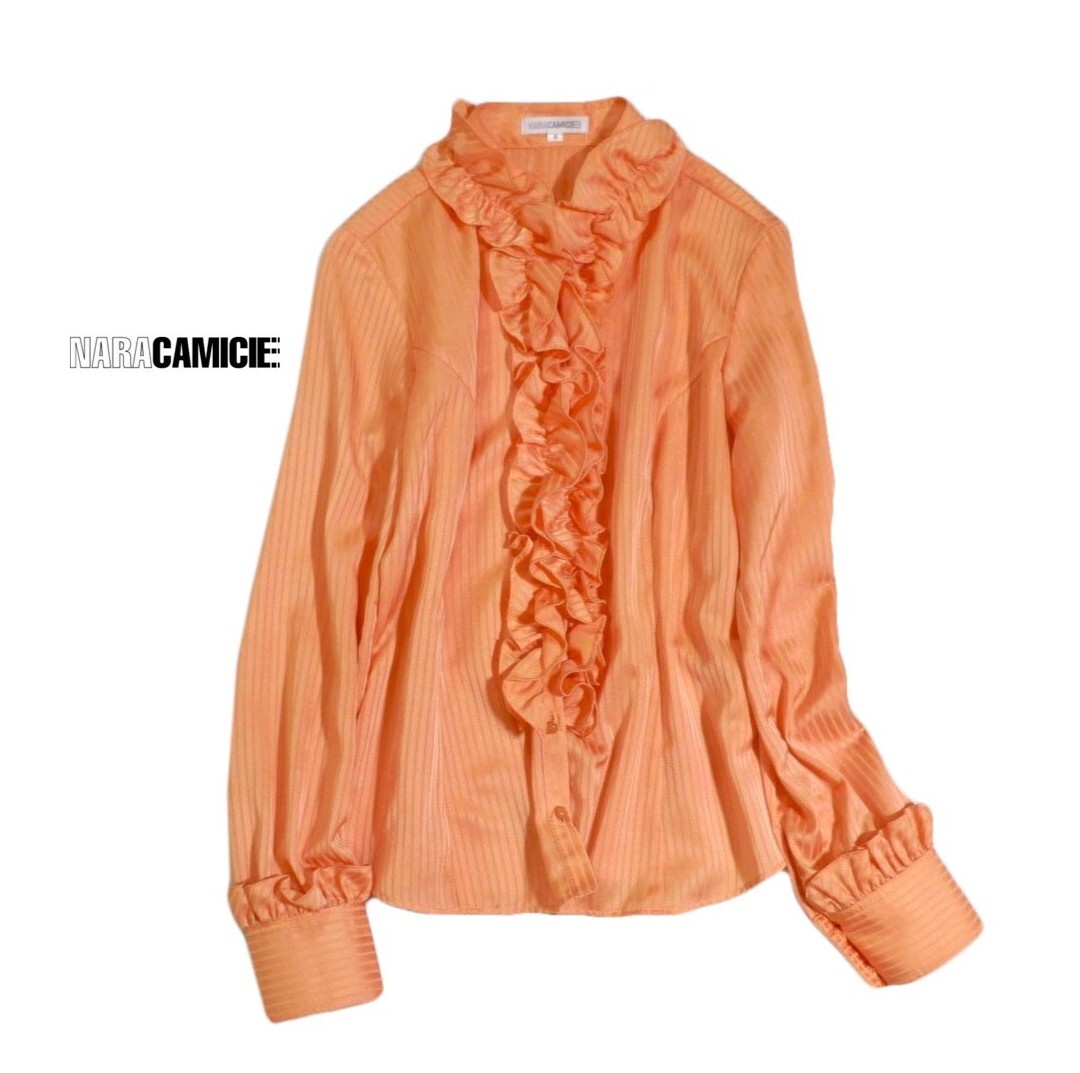ナラカミーチェ ブラウス サイズ表記:Ⅱ お色:オレンジ 素材: ポリエステル100% 平置き実寸:肩幅39 身幅48 着丈59 袖丈60cm位㎝位 手洗い可。 |