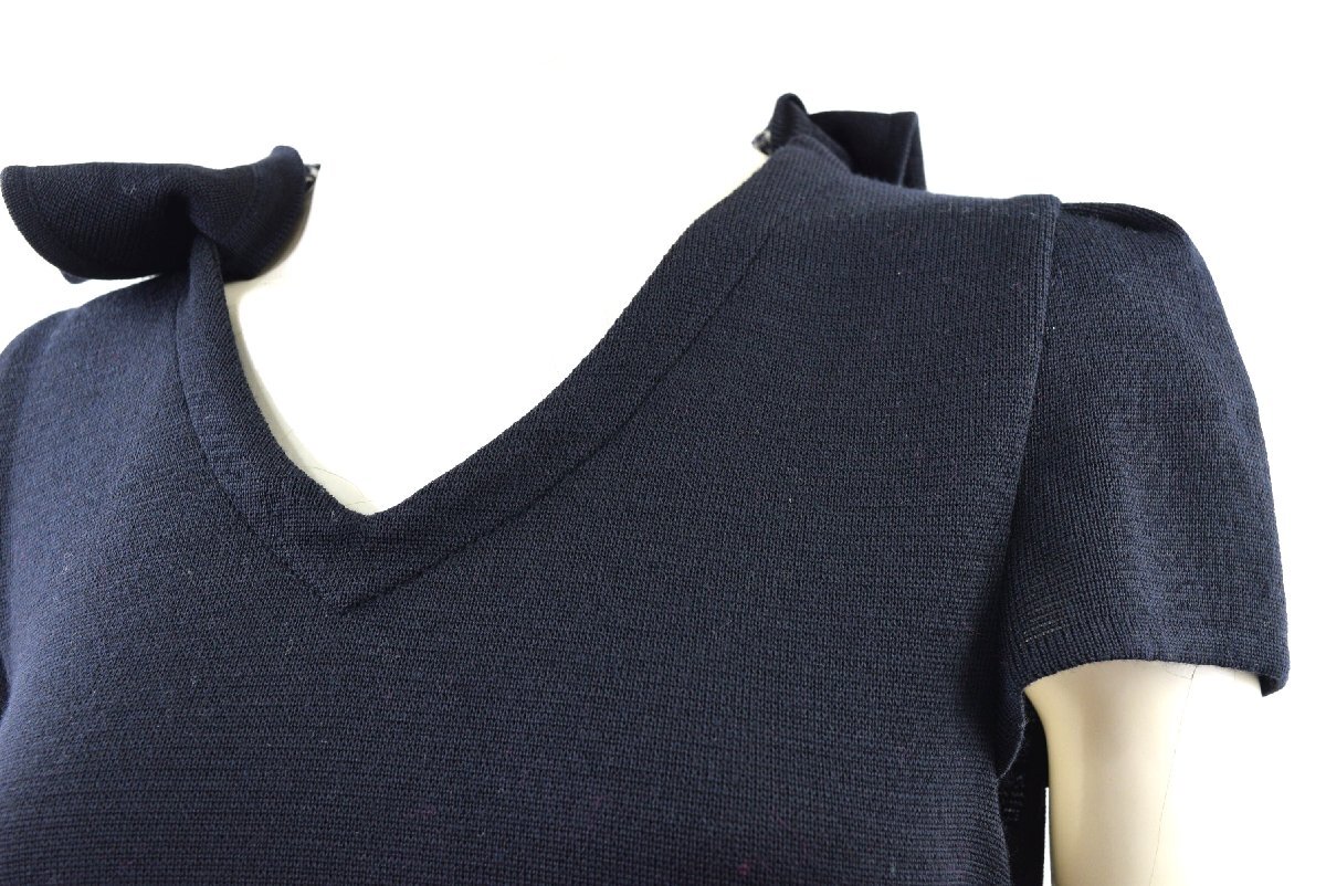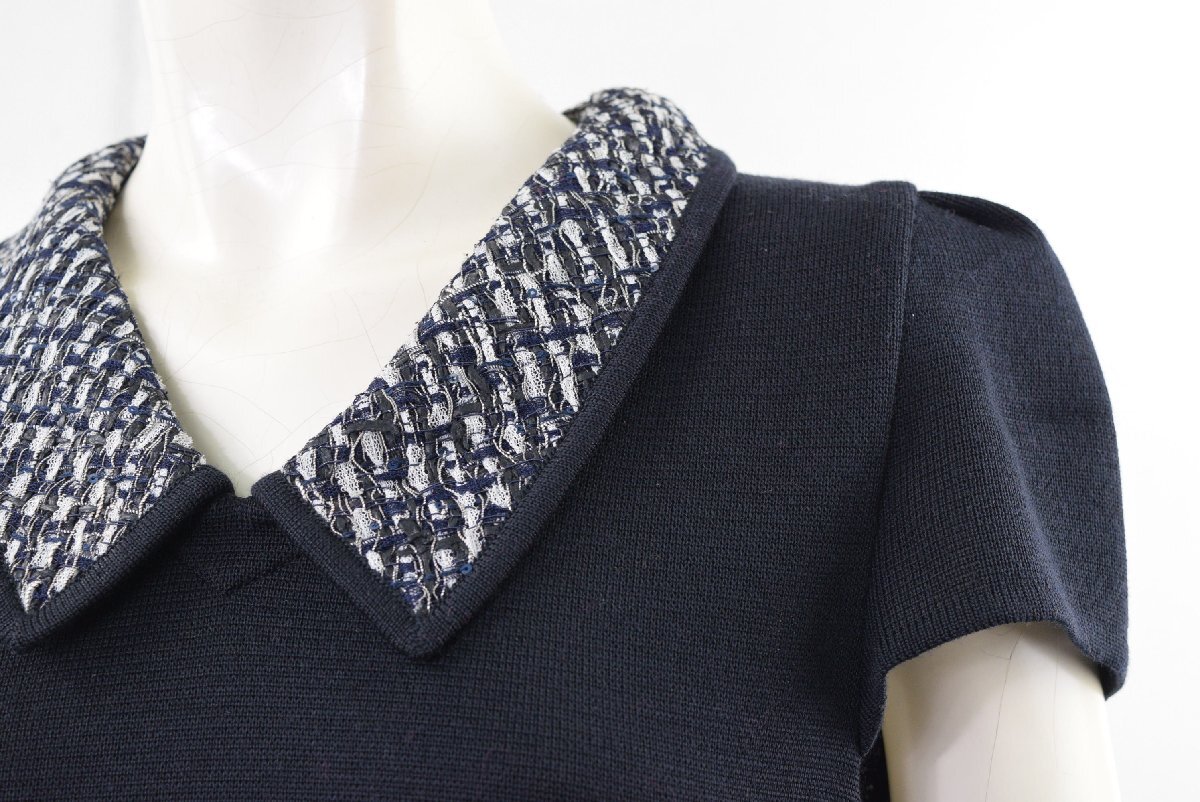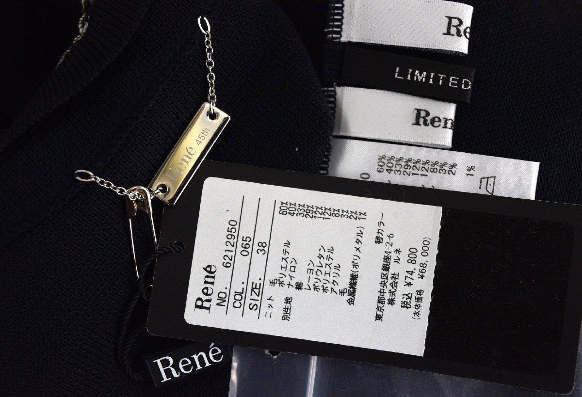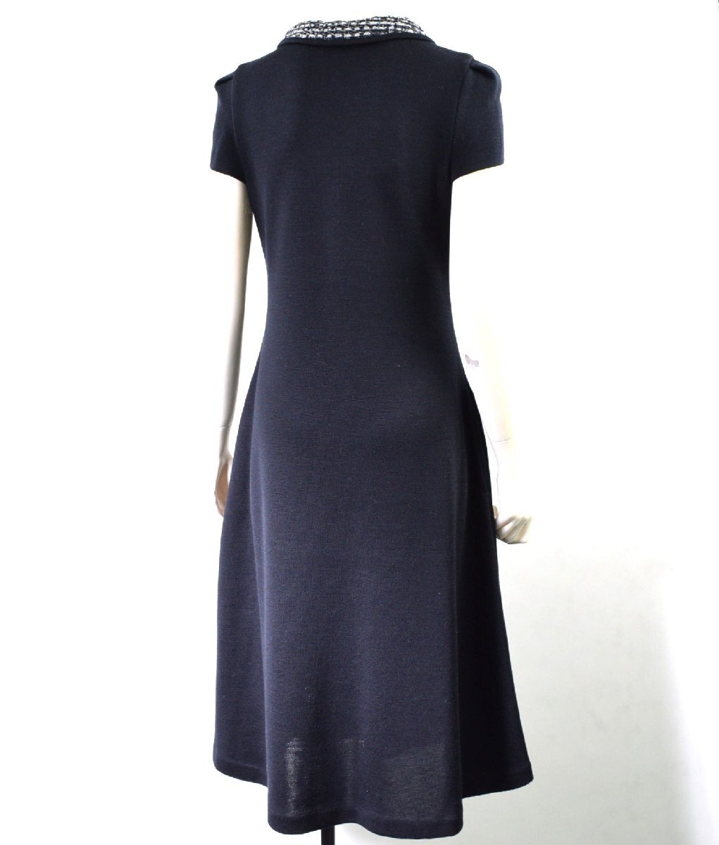1086-25M0325★ルネ Rene★未使用 美品 45周年記念商品 取り外せる2way衿 半袖ニットジャージーワンピース 38 ブラック 黒