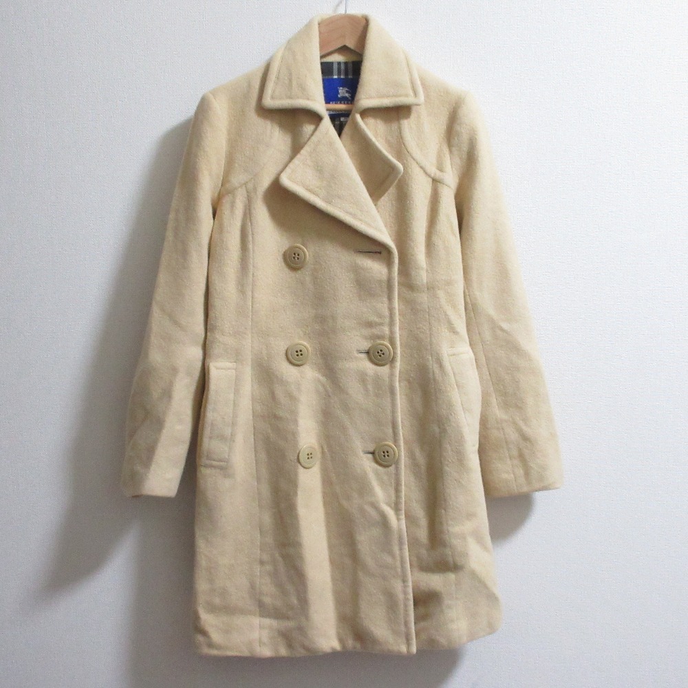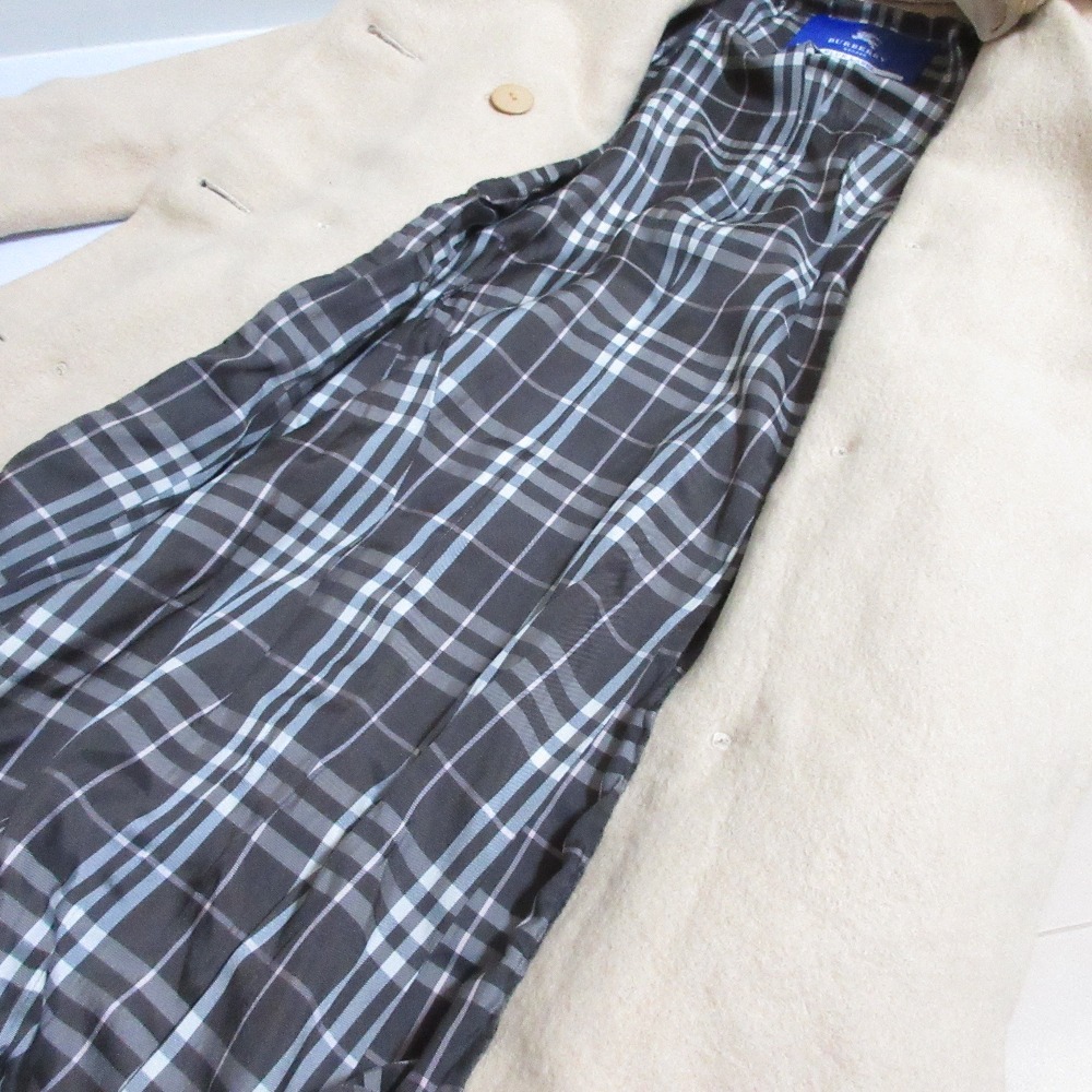良品 BURBERRY BLUE LABEL バーバリーブルーレーベル 裏地ノバチェック アンゴラベルテッドコート サイズ38 ベージュ