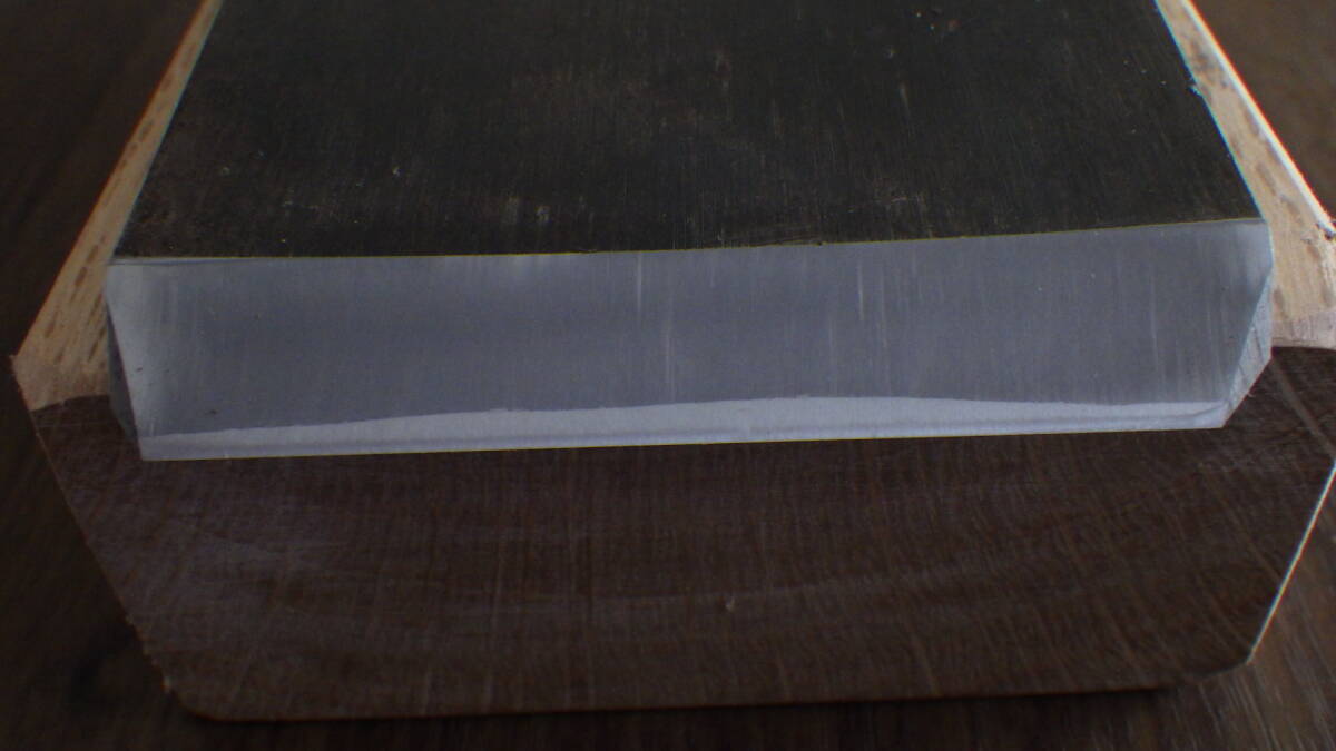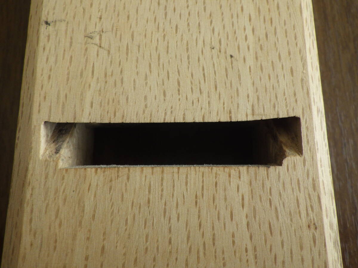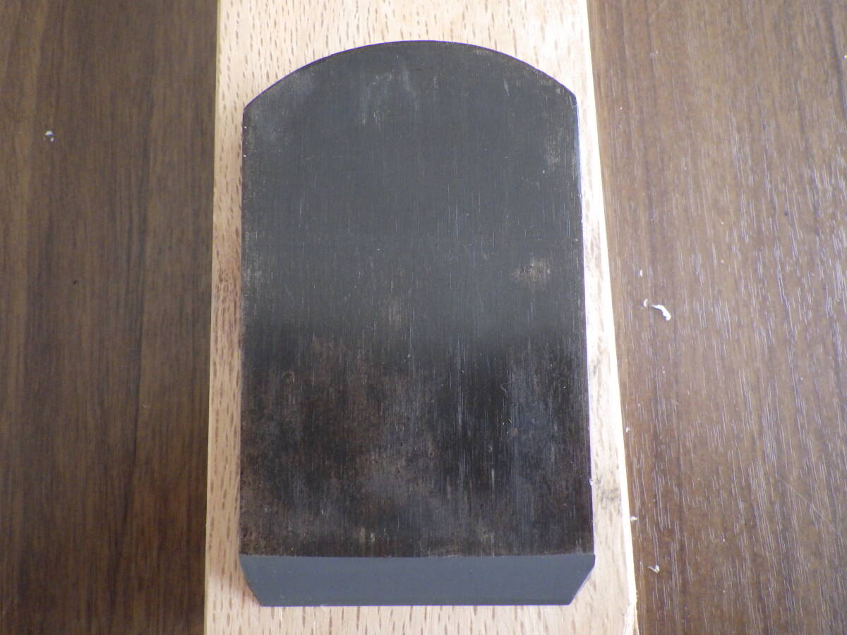 ②台 全長28.7㎝、幅8㎝、厚み3.5㎝、木取は柾目、刃口は普通口です。表馴染みに紙が貼られています。全体的に汚れを削り落とし、木口には割れ止めにボンドを塗布してあります。