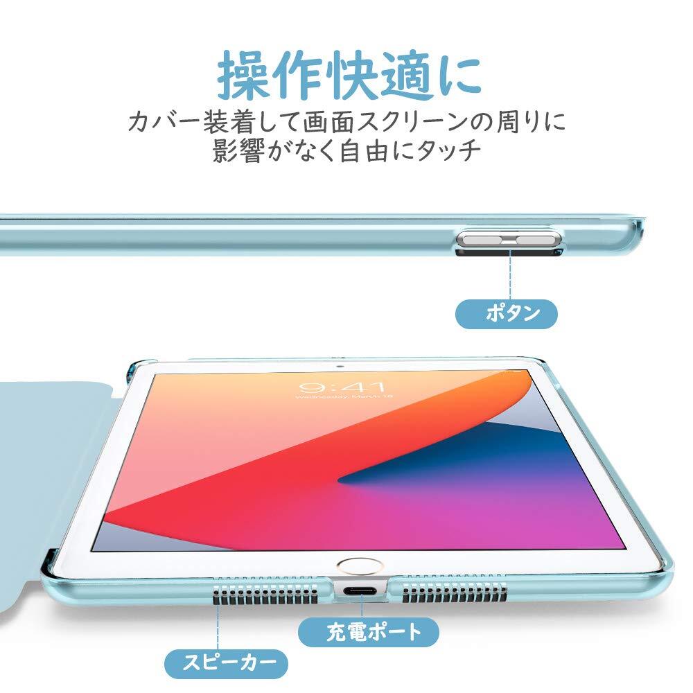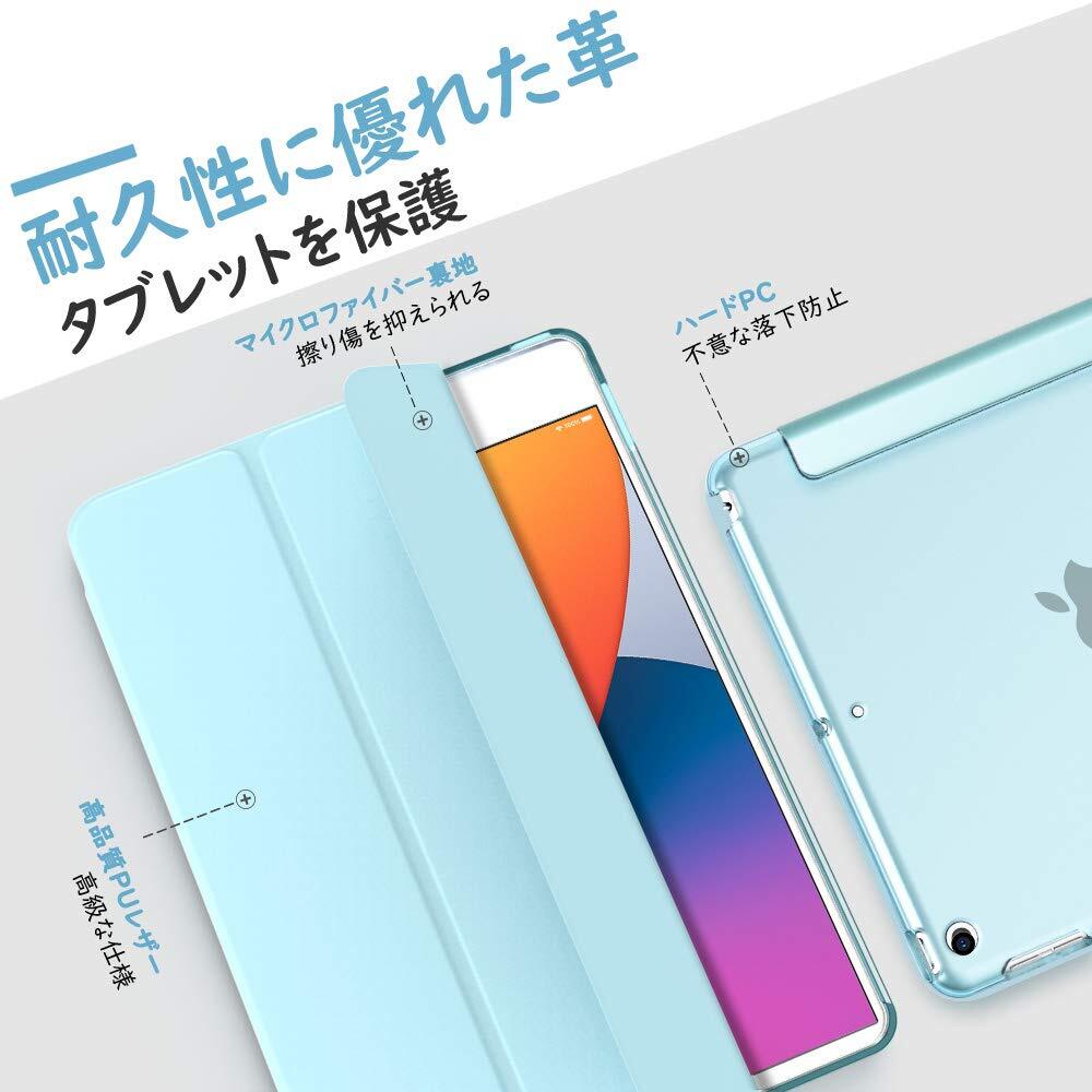 iPad 10.2 ケース Dadanism 第9/8/7世代 アップル iPad 10.2インチ 2021/2020/2019モデル 半透明 カバー スタンドケース オートスリープ機能 軽量 薄型 PU+PC マイクロファイバー裏地 耐久性 全面保護 スカイブルー