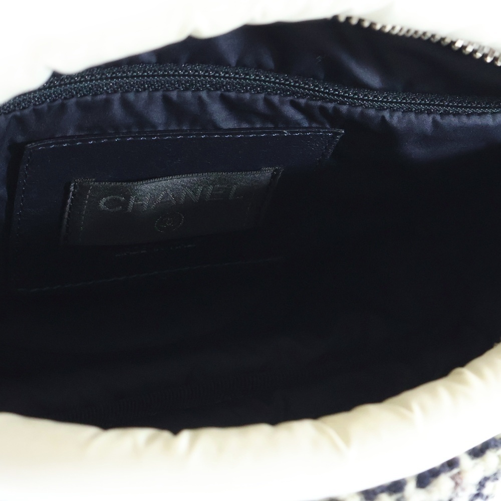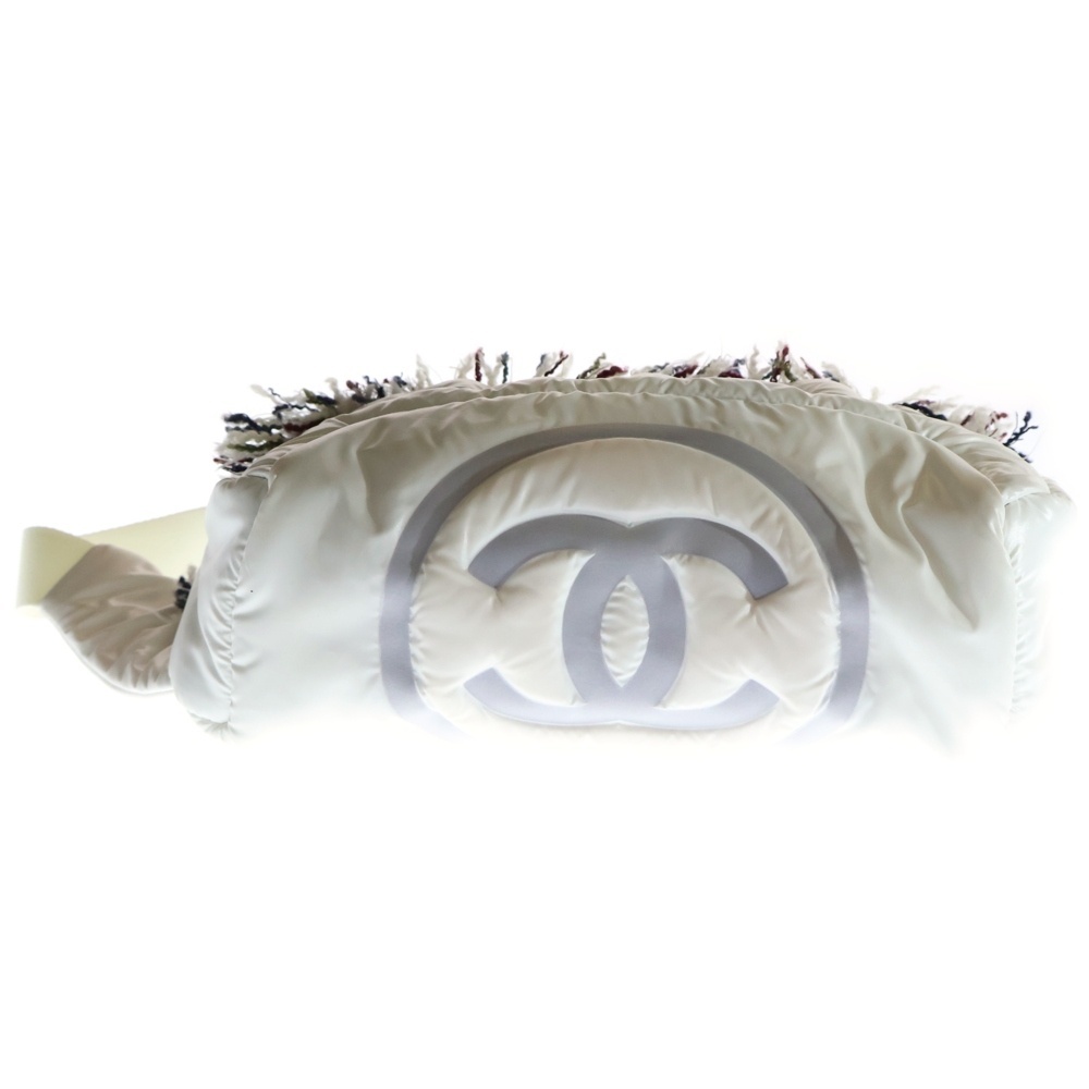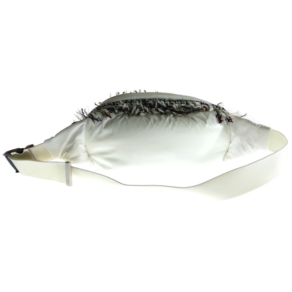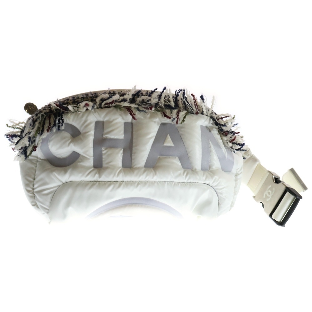 シャネル ココネージュ ココマーク ナイロン 中綿 ツイード切り替え ショルダー ボディー ウエストバッグ ホワイト シルバー金具 26番台
