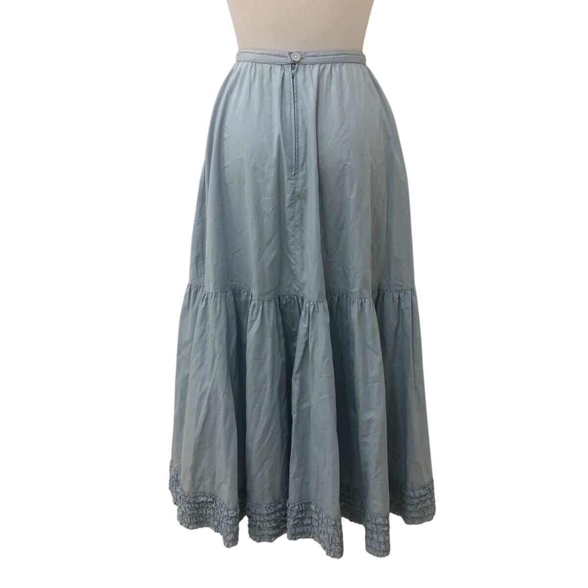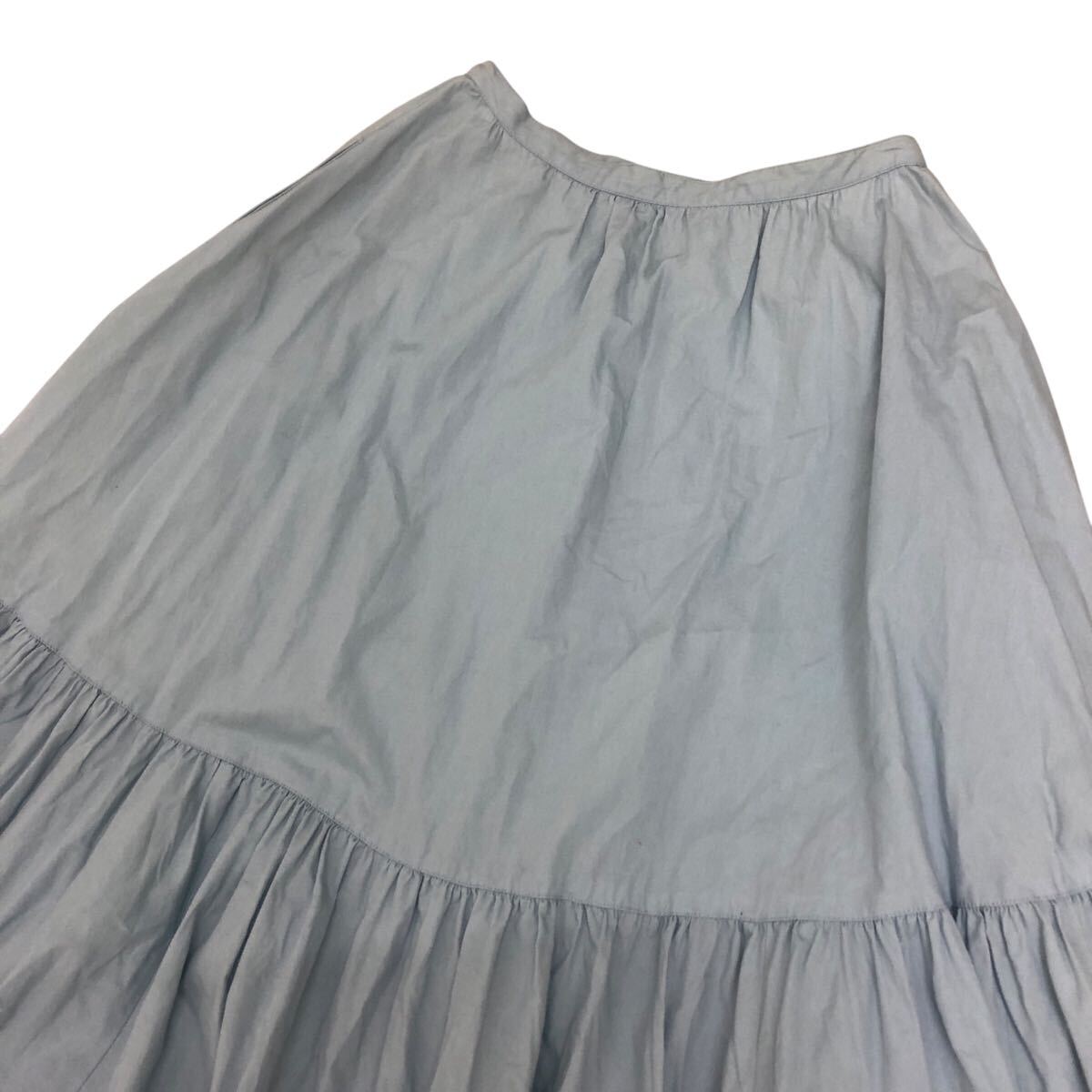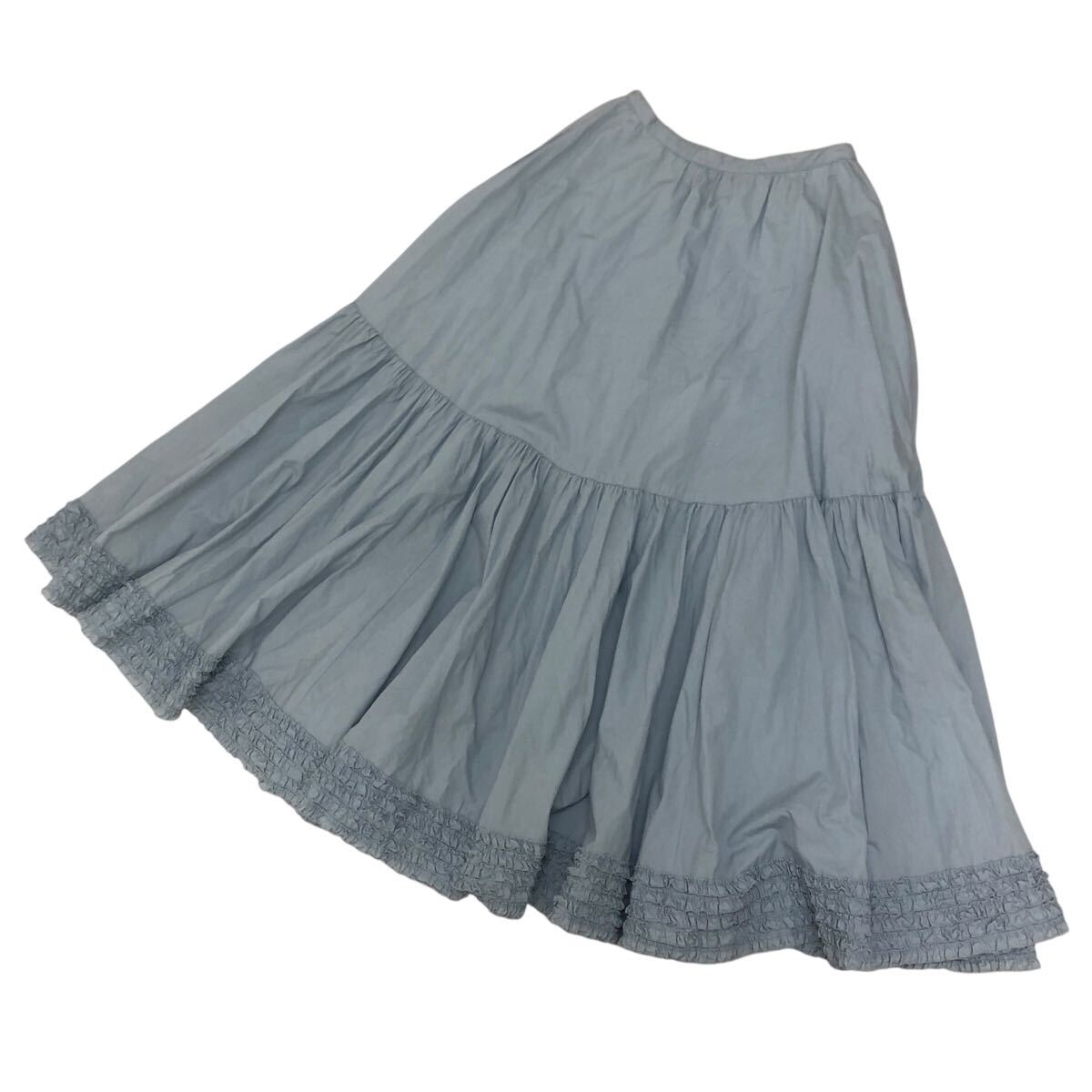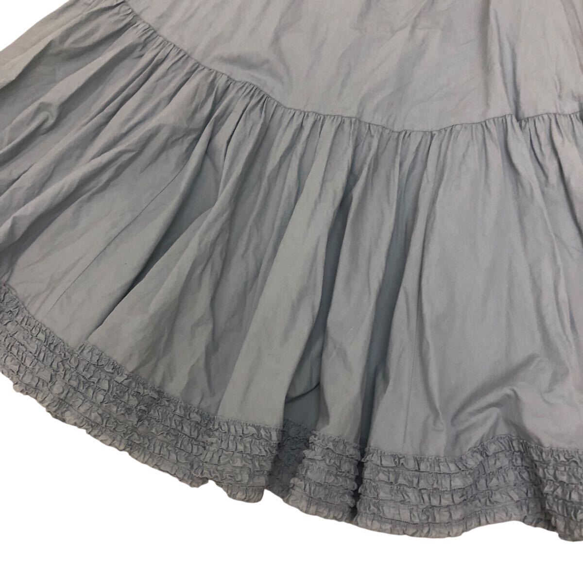 K328-5 PINK HOUSE ピンクハウス ボタン フレア ロング フリル スカート レース 水色 ブルー系 レディース 女性用 実寸参考